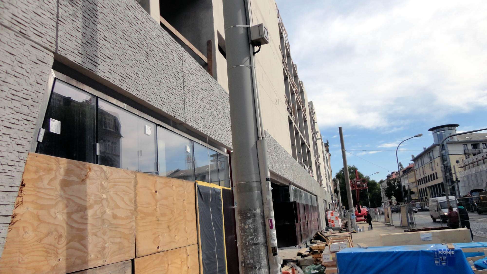Voraussichtlich Ende November wird das Gebäude fertig sein. Die oberen vier der fünf Etagen werden zum Parkhaus, dass mit Stellplatzablösemitteln in Höhe von knapp 1 Million Euro gefördert wird (Neustadt-Geflüster vom 8. September 2010). Im Erdgeschoss sollen neben einem Rewe-Supermarkt eine „dm“-Drogerie, eine Ernstings-Family-Shop, eine Bäckerei und eine Apotheke einziehen. Die ersten Geschäfte werden voraussichtlich im Januar eröffnen.
