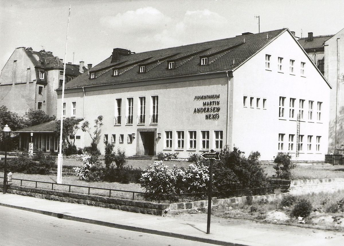 1951 wurde der Jugendklub errichtet. Ursprünglich, so die Legende, sollte er nach dem damaligen spitzbärtigen SED-Chef Walter Ulbricht benannt werden. Der aber soll gesagt haben: „Dieser Scheune gebe ich meinen Namen nicht.“ Belegen lässt sich die Legende nicht mehr, klingt aber gut, denn der am 21. Dezember 1951 eingeführte Name „Jugendheim Martin Andersen Nexö“ hat sich nie etabliert.