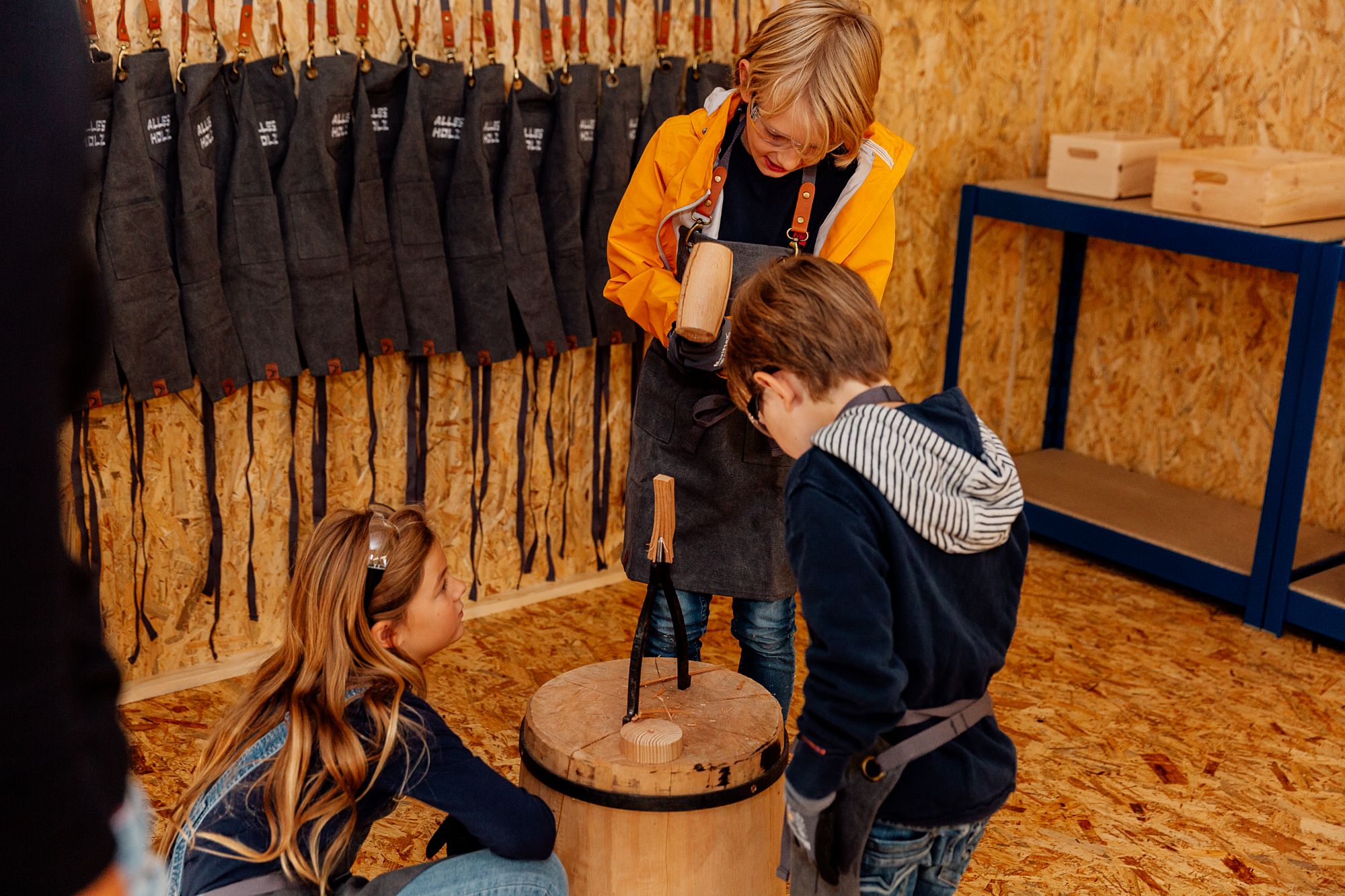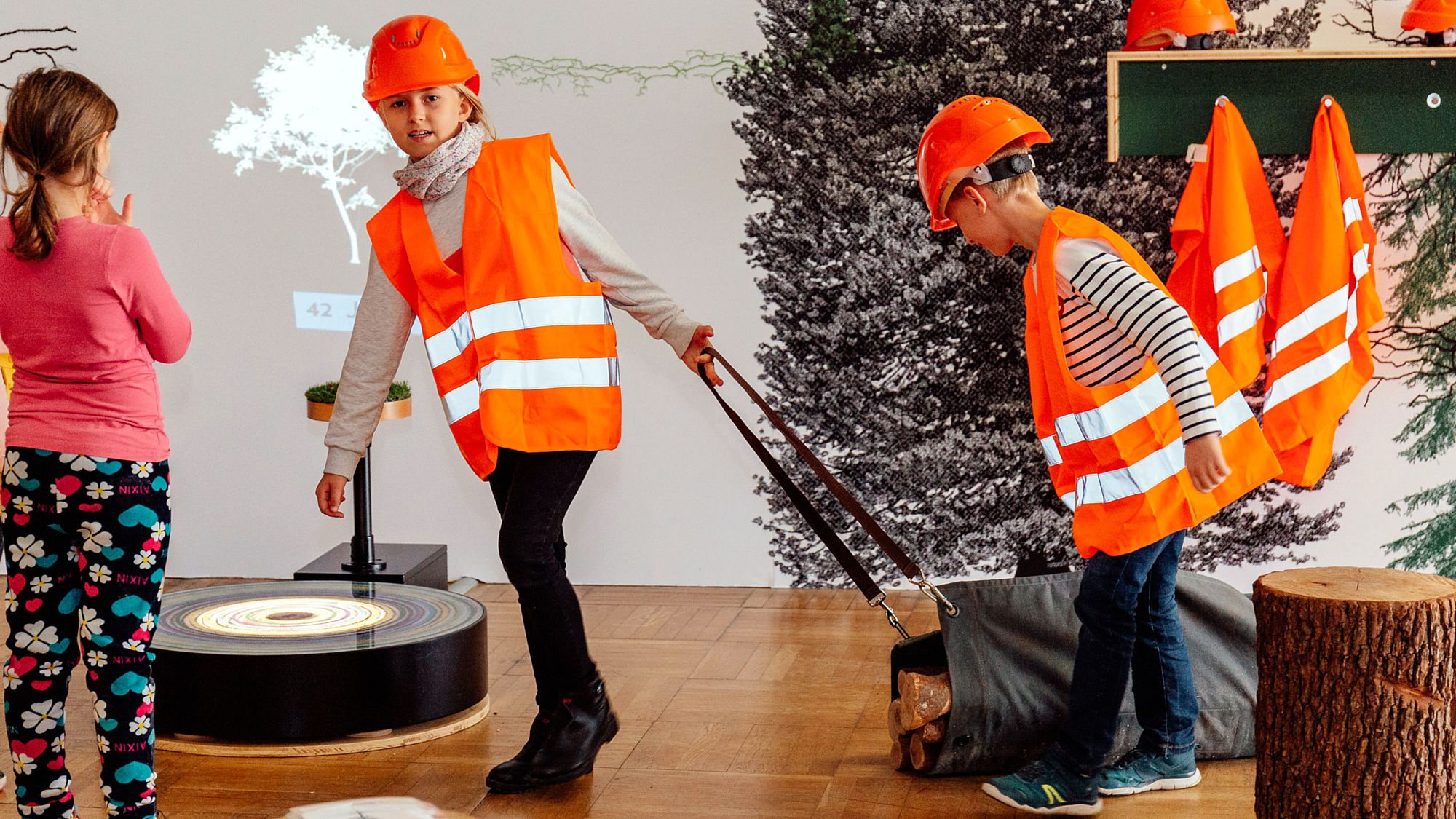 Die Mitmachausstellung bietet Kindern, Jugendlichen und Erwachsenen einen Einblick in das vielfältige Potenzial des nachwachsenden Materials und sensibilisiert für einen nachhaltigen Umgang mit der klimafreundlichen Ressource Holz. Die Kinder können an zahlreichen Stationen selbst Hand anlegen, ihr Wissen in einem actionreichen Fragespiel testen und in der großen Werkstatt einen eigenen Holzkreisel herstellen.