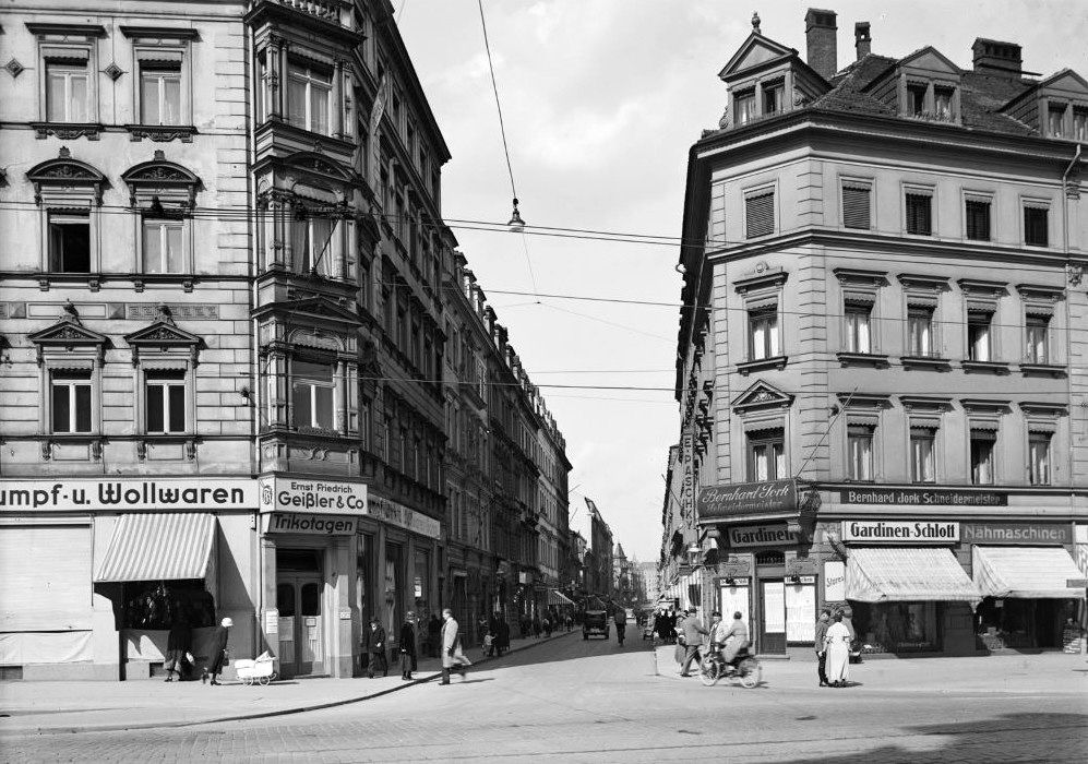 Da drosch die Postschaffnerswitwe Elfriede John aus dem Hinterhaus der 27 mit ihrem Besen dem Alexander Schulze aus der 38 auf dem Kopf, der auf seiner rechten Schulter ein Bündel sechs Meter langer Latten auf dem Fußweg in Richtung Albertplatz bugsierte und der Witwe dabei ihre Teetasse aus der Hand schlug, die am Boden zerbrach. Vor Überraschung fielen dabei die Latten krachend zu Boden und behinderten ihrerseits das Fortkommen weiterer Passanten.