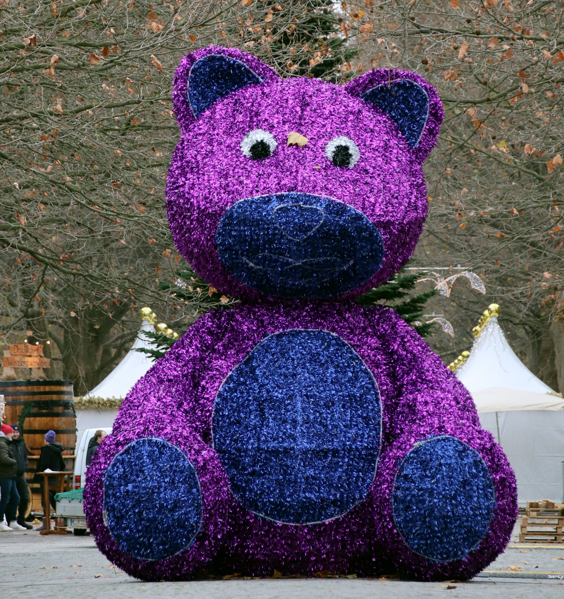 Am Jorge-Gomondai-Platz grüßt jetzt ein riesiger lila Teddy, der nächtens leuchtet und schon nach kurzer Zeit ein Selfie-Spot geworden ist. „Wir wollten mit dem Teddy ein neues Lichtzeichen für Familienfreundlichkeit setzen“, sagt Weihnachtsmarkt-Organisator Matteo Böhme. Nach zwei Jahren Pause ist die Freude riesig. Es präsentieren sich rund 90 Händler, Gastronomen und Schausteller.