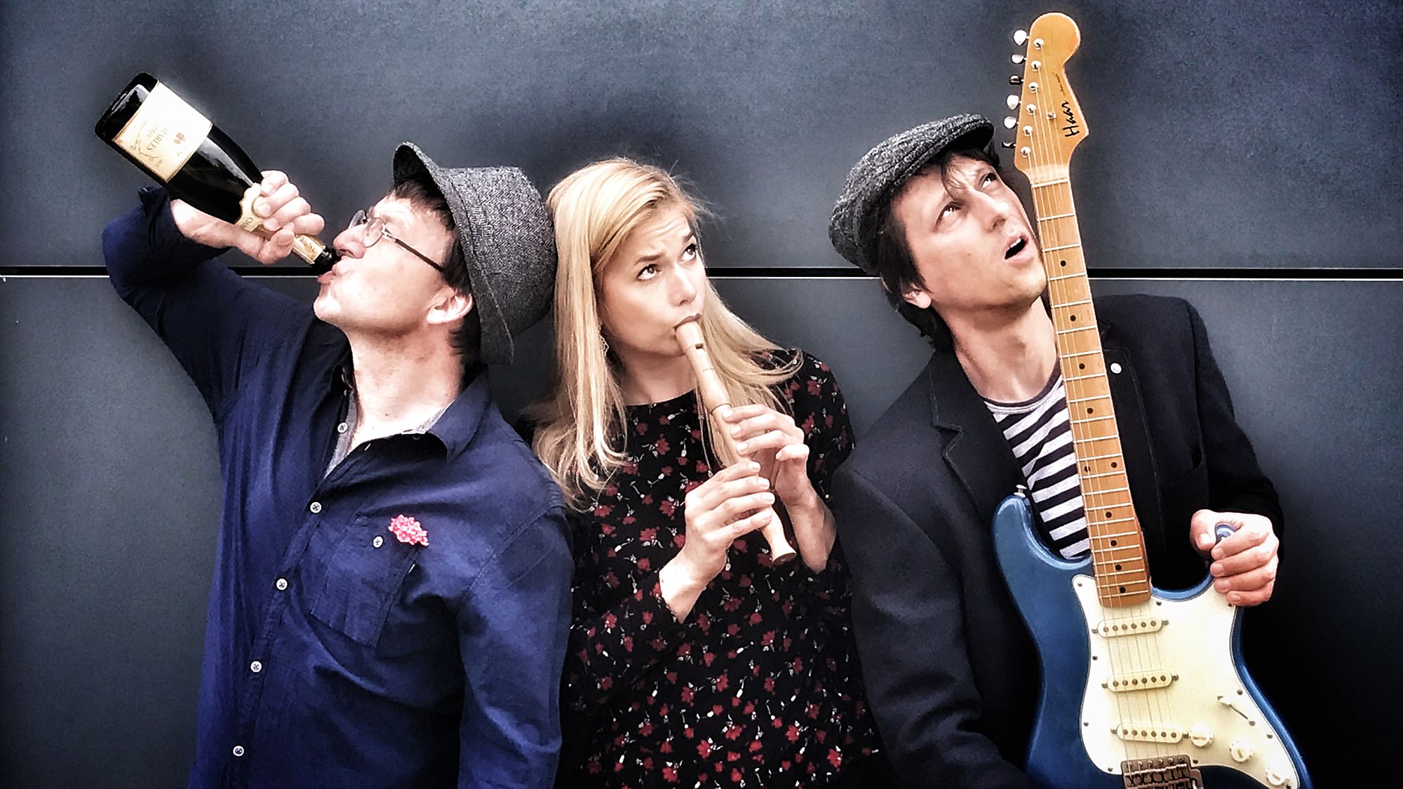 Die Sängerin, Cordula Hanns, ist ausgebildete Schauspielerin ist seit 2012 fest mit der Kultur- und Theaterszene Dresdens verwachsen. Zum Gläschen Weißwein nach einer Vorstellung sagt sie ungern nein. Uwe Zimmermann, Zimmi, sucht und findet Töne am Klavier, Cembalo und Orgel für Sänger, Schauspieler und Tänzer an den Landesbühnen Sachsen und anderswo- manchmal dirigiert er auch. Einem guten Tropfen ist er nicht abgeneigt. Eckart Poser, auch genannt Ekke, ist Band- und Theatermusiker, der in vielen Projekten, Orchestern, in der Kleinkunst und im Studio auf