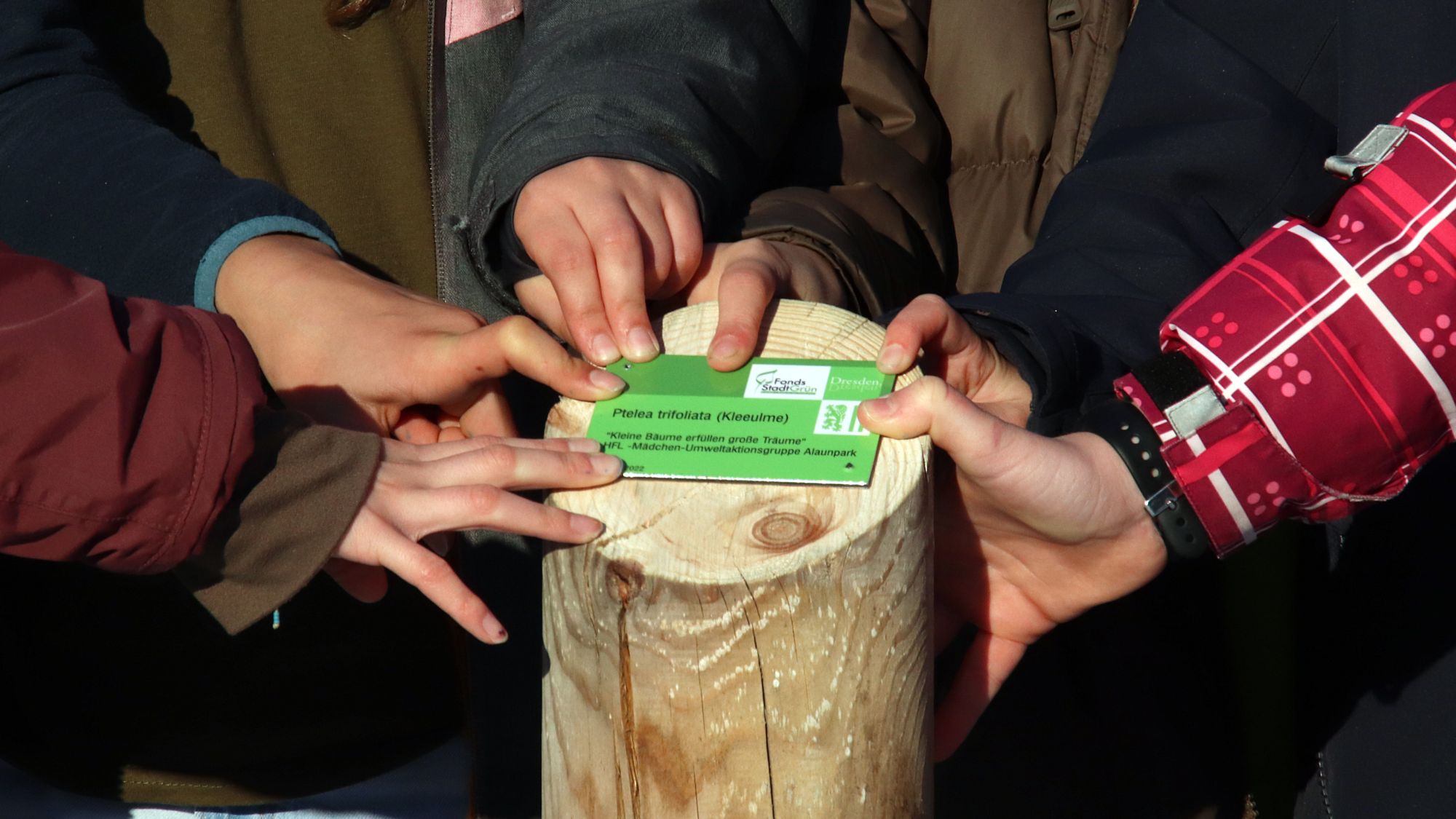 Sechs junge Neustädterinnen haben dafür gesammelt, dass es auf dem Alaunplatz neue Sträucher gibt. Gestern wurden die schon im Herbst gesetzten Kleeulmen nun offiziell mit einer Plakette gewürdigt und die Umweltschützerinnen konnten „ihren Baum“ einweihen.