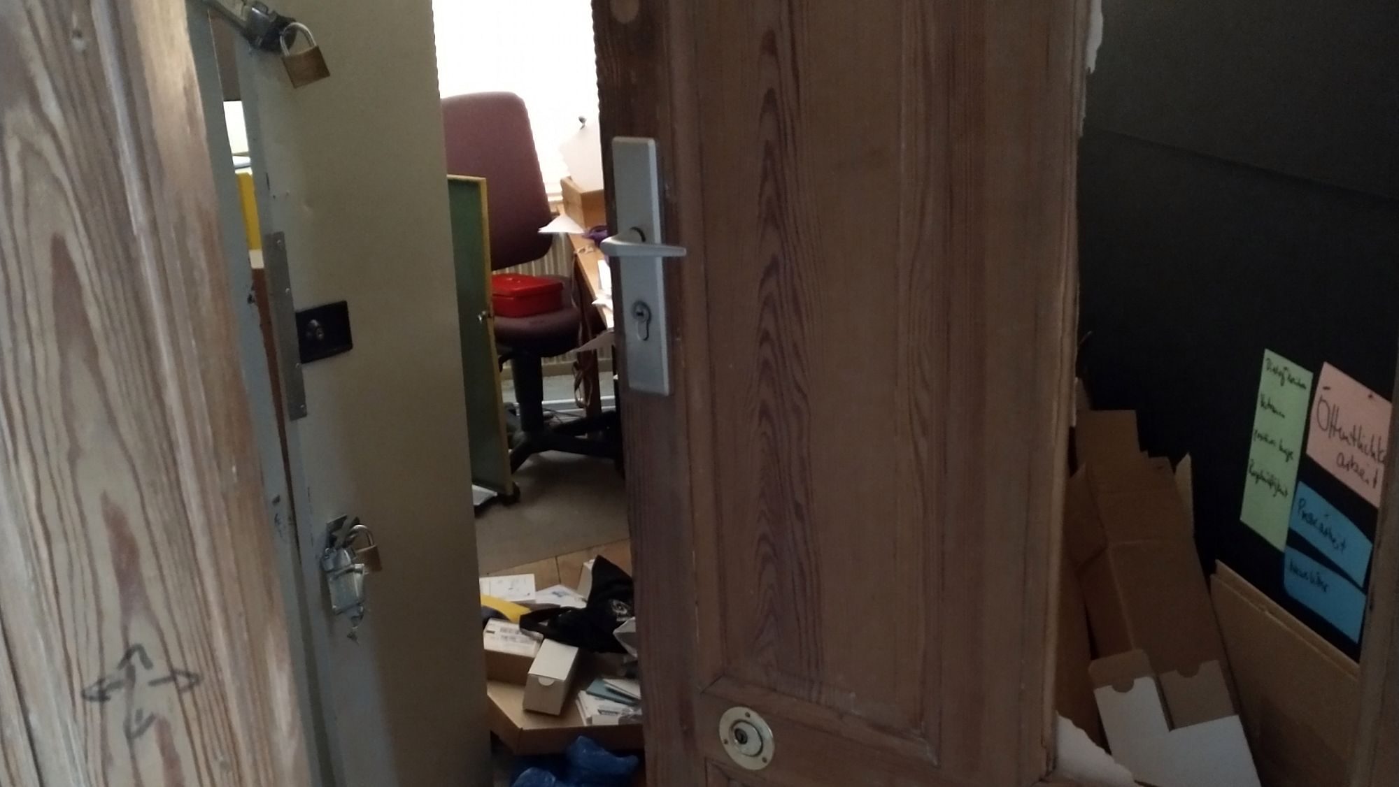 Der oder die Täter haben im Erdgeschoss und im zweiten Obergeschoss Türen aufgetreten. Es wurde Geld und Technik, Computer und Kameras gestohlen.