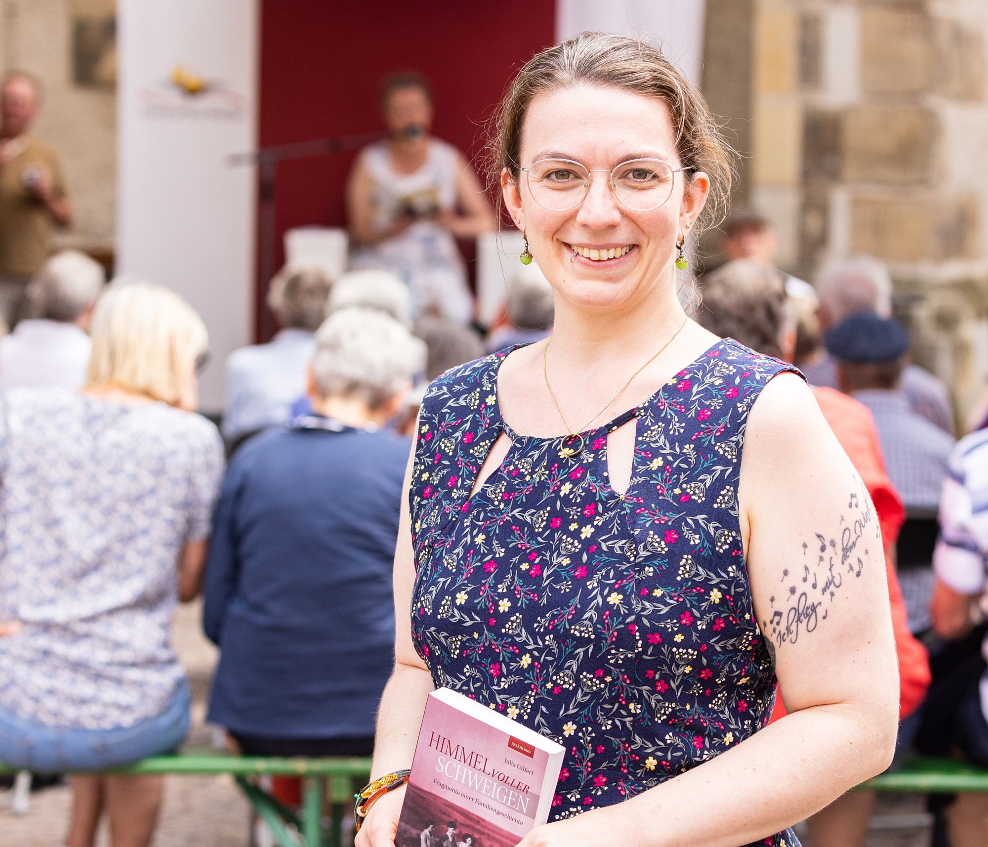 Die Autorin Julia Gilfert hat im Sommer 2022 das Publikum und die Jury vom Literaturfest Meißen tief bewegt und durfte sich, zusammen mit Martina Altschäfer („Andrin“, Mirabilis Verlag), am Ende über den Literaturpreis freuen.