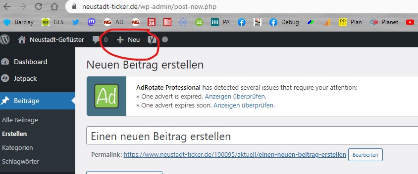 Dieser Text fasst zusammen, wie ein neuer Beitrag bzw. Artikel im Neustadt-Geflüster erstellt wird.