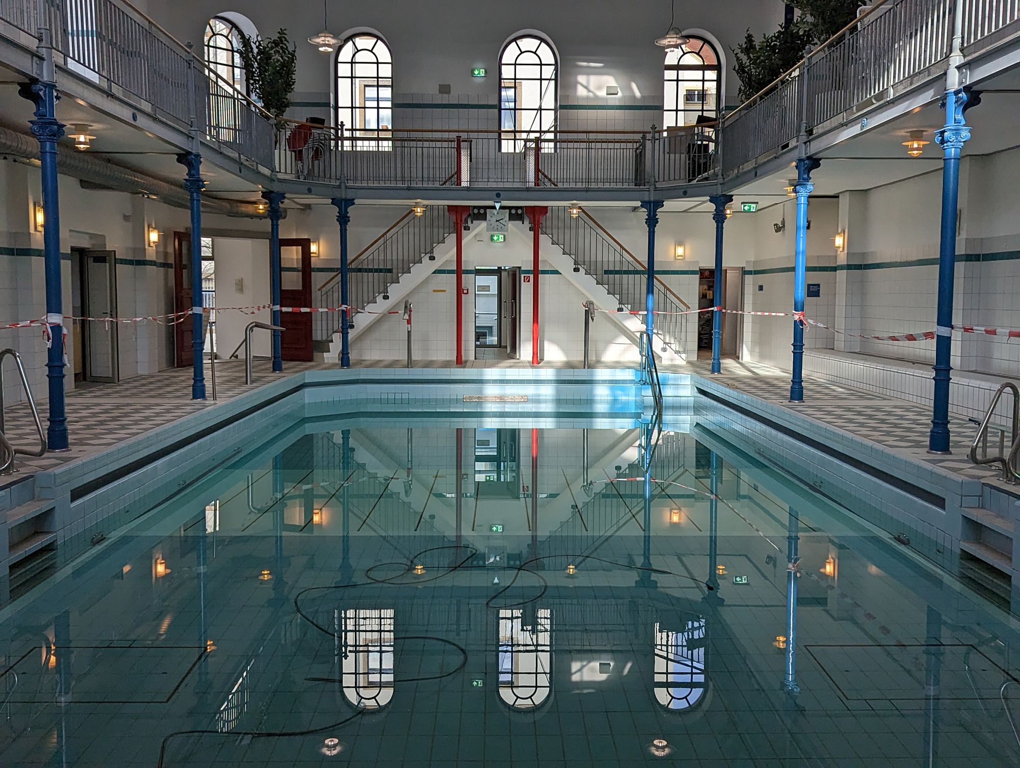 Wie Lars Kühl, der Sprecher der Dresdner Bäder GmbH heute mitteilt, sind die Sanierungsarbeiten soweit abgeschlossen, dass zum März das Hinterhofschwimmbad an der Louisenstraße 48 wieder geöffnet werden kann. Dresdens älteste Schwimmhalle (Eröffnung 1895 als Germania-Bad) wurde seit Mai 2021 umfangreich saniert. Die Sanierung betraf weniger den Innenraum als die Technik im Keller. Filter-Anlagen und Dosiereinrichtungen für die Badewasseraufbereitung wurden erneuert. Außerdem wurden Sanitärleitungen und Elektro-Anlagen überholt. Die Lüftungs- und Gebäudeleittechnik wurde auf den heutigen Stand gebracht.