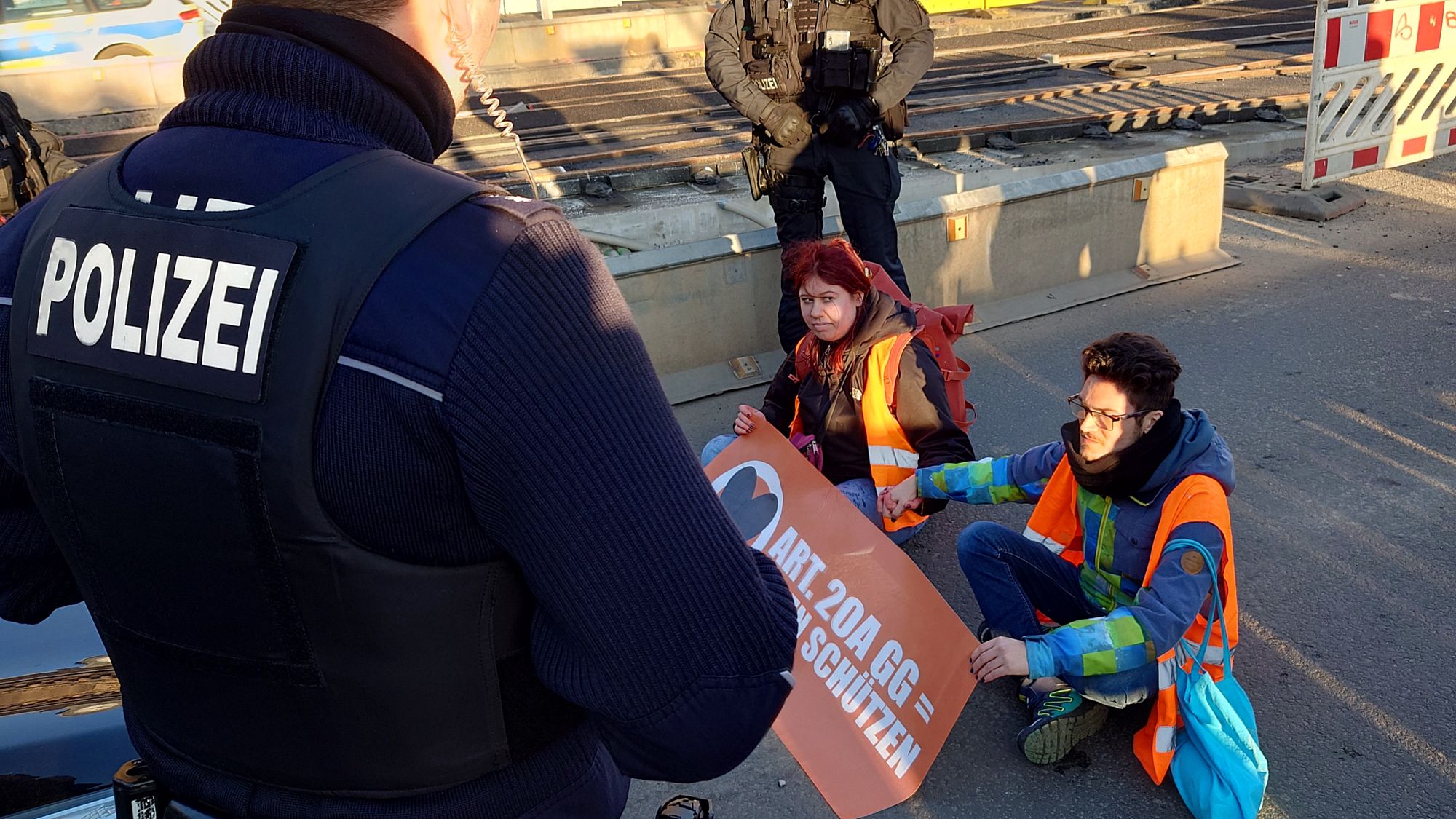 Die Autofahrer*innen nahmen den Protest überwiegend gelassen. Durch die Blockade staute sich der Verkehr bis weit in die durch die aktuelle Baustelle ohnehin schon eingeschränkte Hansastraße. Gegen 16.30 Uhr räumte die Polizei die beiden Demonstrierenden problemlos zur Seite und die Autos konnten wieder fahren.