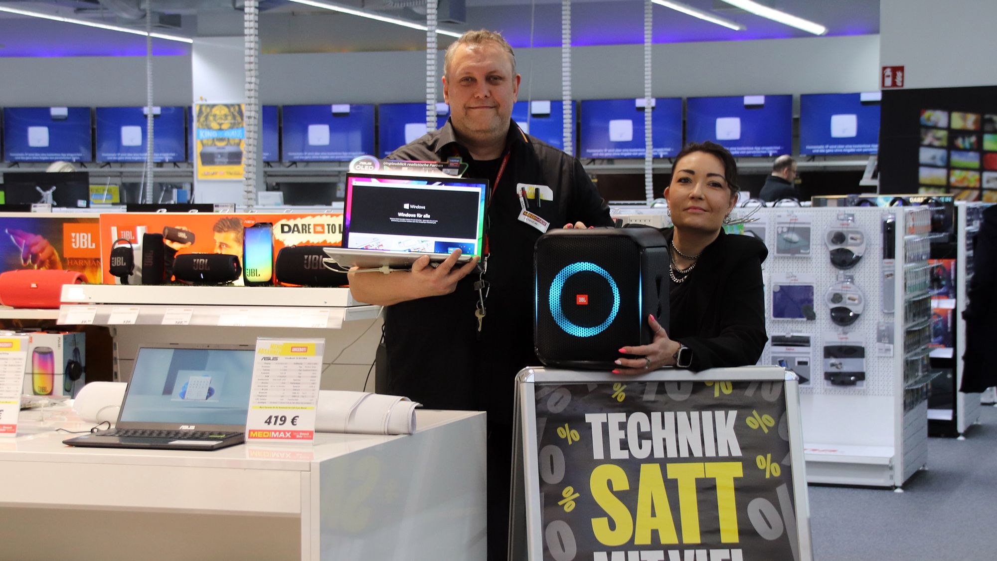 Im MEDIMAX im Simmel-Center findet am Sonnabend, dem 4. März 2023 der sogenannte Personalkauftag statt. „Das heißt, wir bieten alle Produkte 20 Prozent günstiger an“, sagt Marktleiterin Kathrin Hänsel. Das gilt für alle vorrätigen Produkte, vom Staubsauger über den Fernseher, die Kaffee- oder Waschmaschine, bis hin zu Handy und Computer. „Ausgeschlossen sind Finanzierungen, Telekom-/Mobilfunk-Verträge und Aufladekarten/Voucher aller Art“, sagt Hänsel.