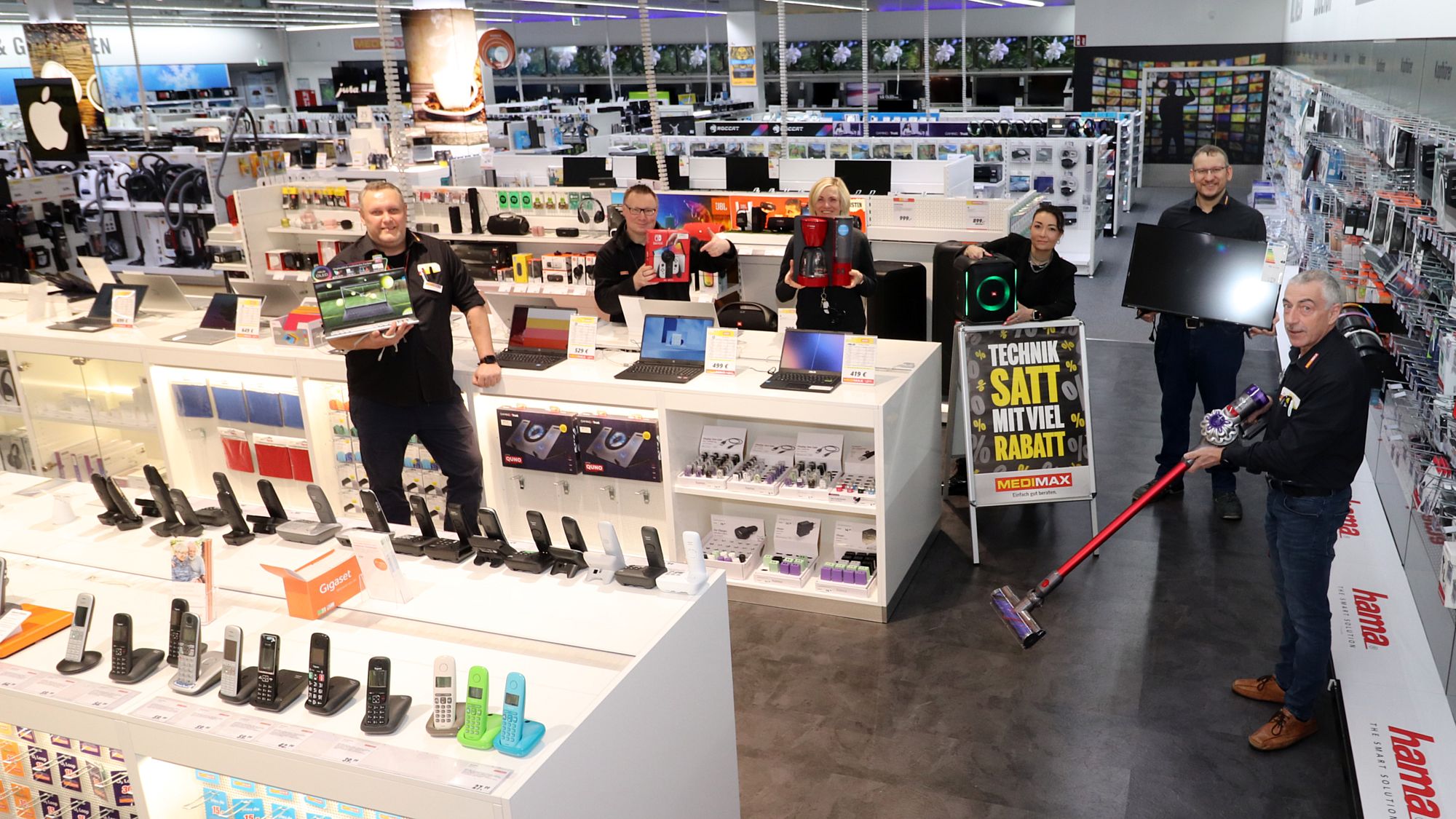 Die Crew um Kathrin Hänsel hat den Markt im Obergeschosse des Simmel-Centers auf Vordermann gebracht und freut sich auf einen großen Ansturm am Sonnabend. Im jedem MEDIMAX arbeitet ein individuelles und professionelles Team mit gut geschulten und engagierten Elektro-Fachverkäufern, die dafür sorgen, dass die Kundinnen und Kunden ein einzigartiges Einkaufserlebnis erfahren. Die Fachverkäufer sind wahre Technik-Spezialisten und helfen nicht nur dabei, das Wunsch-Gerät zu finden, sondern beraten so umfassend, dass keine Fragen offen bleiben.