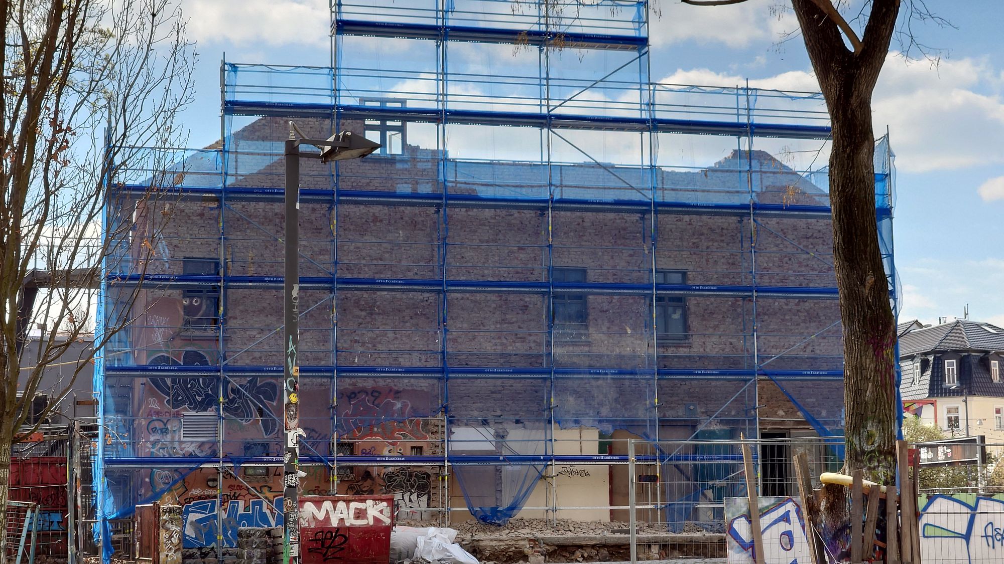 Währenddessen schreitet der Scheune-Umbau voran. Inzwischen ist das Gebäude im Wesentlichen entkernt, ein großer Teil des Daches wurde abgetragen. Updates zum aktuellen Baufortschritt gibt es in einem Telegram-Kanal der Scheune.