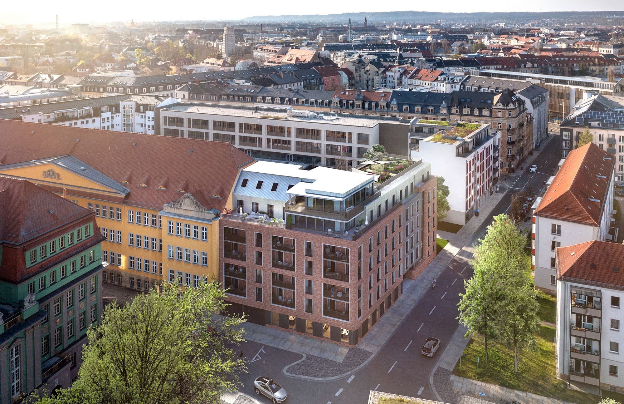 In die Dresdner Neustadt wohnen ist begehrt – gern auch für länger. Da liegt der Gedanke nahe sich etwas Eigenes zu kaufen. Gebaut wird derzeit im ruhigeren Teil der Dresdner Neustadt, direkt am Rosengarten und der Elbe, ein Stadthaus – als Energieeffizienzhaus A+ mit einem Endenergiebedarf für das Gebäude von nur 17 kWh/m2. Es entsteht ein wunderbarer Ort zum Leben – mit allen Annehmlichkeiten einer perfekten Infrastruktur – Wohnen, Einkaufen, Arbeiten und Familie lassen sich hier sehr gut zu Fuß und mit dem Rad verbinden. Schulen, REWE, Arztpraxen liegen in unmittelbarer Nähe.