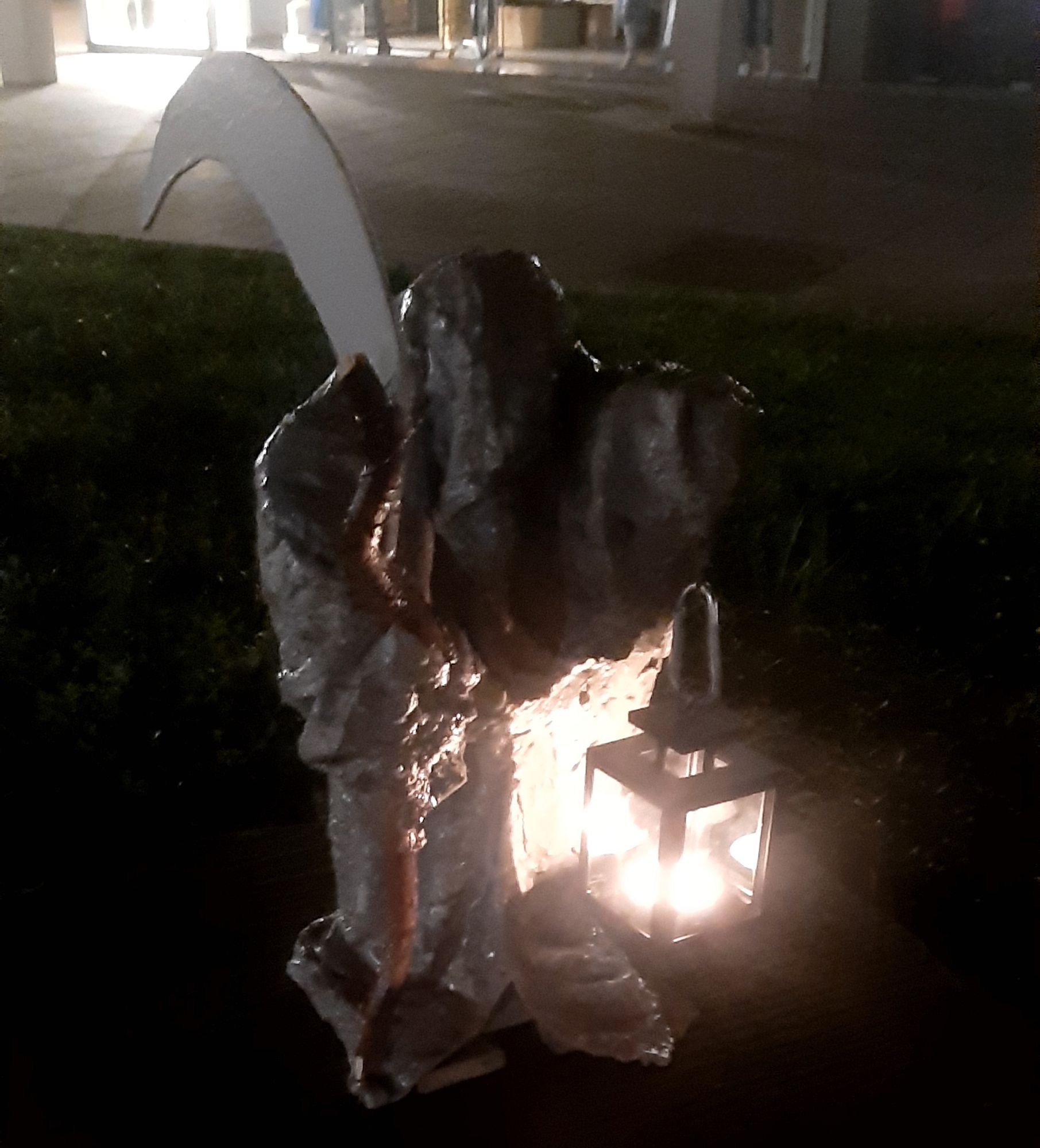 Für die ersten Tode hatte er einfach nur ein Geschirrtuch über eine leere Weinflasche gestülpt. Inzwischen bastelt er umfangreiche Untergestelle. Außerdem erhalten die kleinen Tode eine Laterne, die nachts leuchtet. „Dafür muss ich dann nach Einbruch der Dunkelheit rüber flitzen und sie anzünden.“ Manchmal braucht er bis zu einem Monat, bis ein neuer Tod fertig ist.
