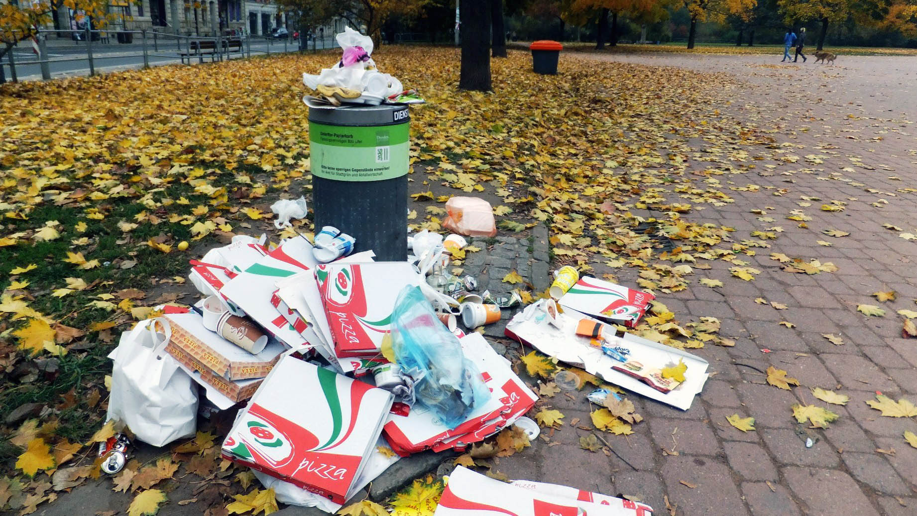Ich finde die Idee des Pizzakartonpfands genial. Die Schachteln machen nun mal einen Großteil des Mülls im Park aus. Und im Sinne der Pizzabudenbesitzer müsste das auch sein. Verlust machen sie nicht, dafür aber Gewinn, wenn die Kunden zu faul sind, ihren Euro wieder einzustreichen. Landen keine sperrigen Pizzakartons mehr in den Mülleimern, gibt’s automatisch auch gleich mehr Platz für anderen Müll und das Überquellproblem tritt nicht ganz so schnell ein.