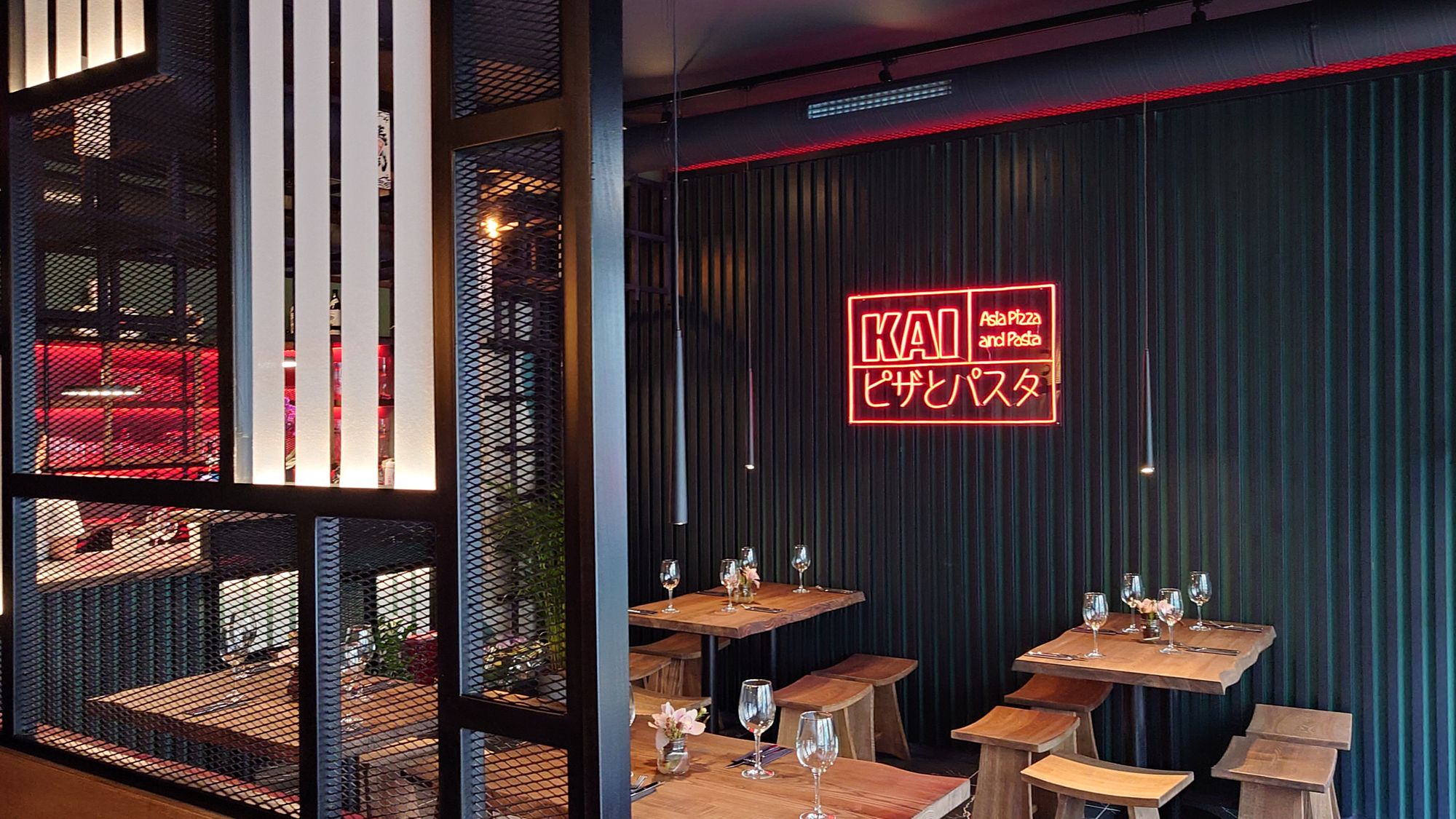 Also, auf zum Test. An dem Dienstag ist das kleine Restaurant zum Mittagstisch nur mäßig gefüllt. Umso besser, kann man sich einen schönen Rundumblick versorgen. Mit viel Holz kommt „Kai“ sehr gemütlich daher. Ich habe mir eine kulinarisch bewanderte Begleitung ausgesucht. Gemeinsam wollen wir nun dem Geheimnis von Kais Pizza und Pasta auf den Grund gehen.