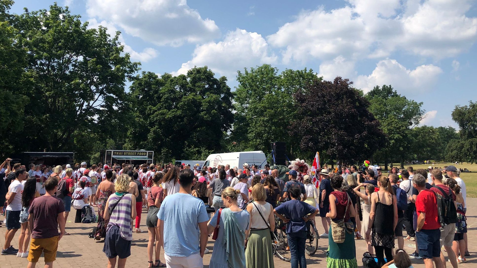 Einige hundert Leute feierten in der gleichen Nacht dann an der Schiefen Ecke. Dabei allerdings einen Unterschied zu einem normalen Sommerabend zu erkennen, war ziemlich schwer.