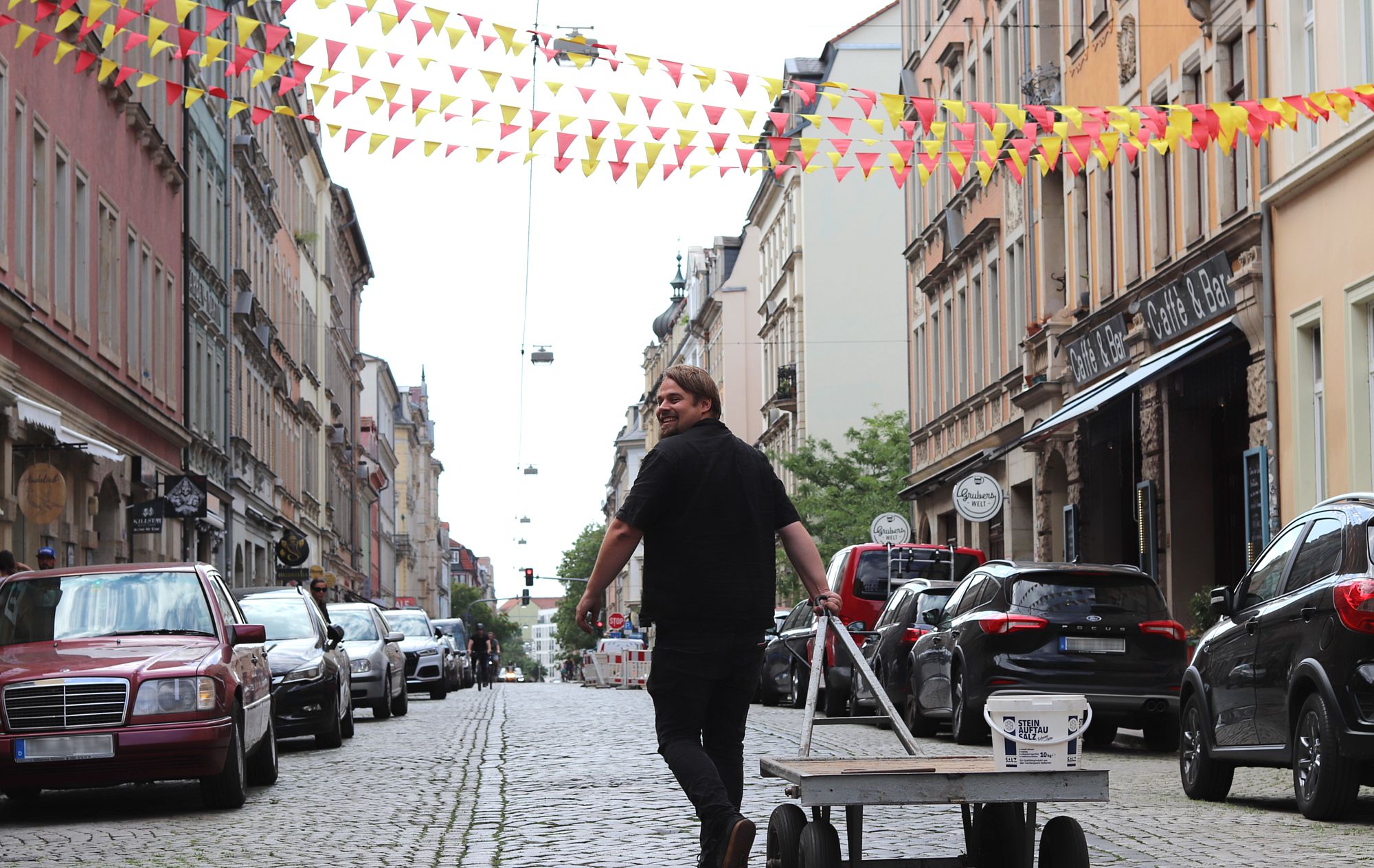 Den dritten Teil der Festreihe „Bunter Sommer Neustadt“ organisiert Albrecht Heinke. Er war vor ein paar Monaten von den Curry- und Co-Betreiberinnen angesprochen worden, ob er das Louisenfest organisieren wolle. Nun sind die Vorbereitungen fast abgeschlossen und Albrecht ordentlich ausgepowert. Dass es so viel bürokratischer Aufwand werden würde, für ein anderthalb Tage ein Fest zu organisieren, hat ihn zwar nicht überrascht, aber doch gefordert. „Ich muss in der Spitzenzeit zwölf Leute für Security aufstellen“, sagt er. Die werden am Eingang von der Rothenburger und der Kamenzer Straße unter anderem die Einhaltung des Glasflaschenverbots kontrollieren.