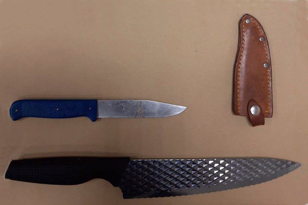 Wahrscheinlich wollte der Mann nur zum zum Kartoffeln schälen gehen oder etwa in die Pilze und hat sich deshalb die Messer eingepackt?