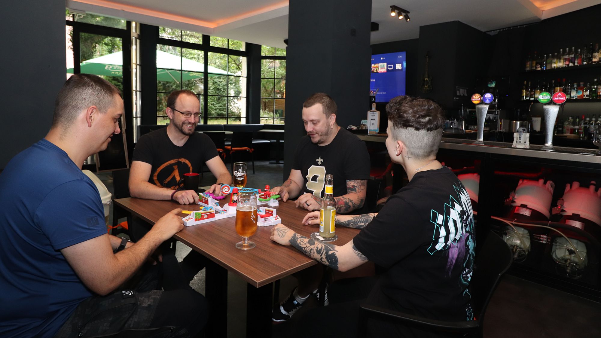 „Jeden letzten Donnerstag im Monat laden wir zum Kneipenquizz“, sagt Ingmar und dienstags sei Turniertag. Da Spielen bekanntlich hungrig und durstig macht, gibt es auch Speis und Trank. Der Küchenchef verspricht sorgsam zubereitete Pizza, Burger und Nuggets, auch ein vegetarisches Angebot ist dabei. Noch befinde man sich in der Findungsphase sei für Wünsche und Empfehlungen offen, Japanischer Käsekuchen steht aber schon fest.