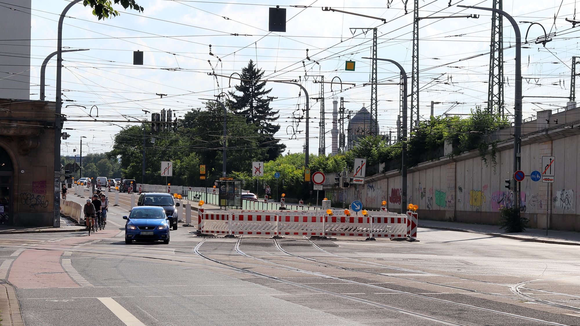 Seit dem 28. Juli 2023 werden im Auftrag der Dresdner Verkehrsbetriebe (DVB) auf der Könneritzstraße zwischen Maxstraße und Devrientstraße insgesamt 610 Meter verschlissene Straßenbahnschienen ausgetauscht. Dazu gehören auch die Weichen und der doppelgleisige Abzweig von der Haltestelle „Kongresszentrum“ in die Ostra-Allee.