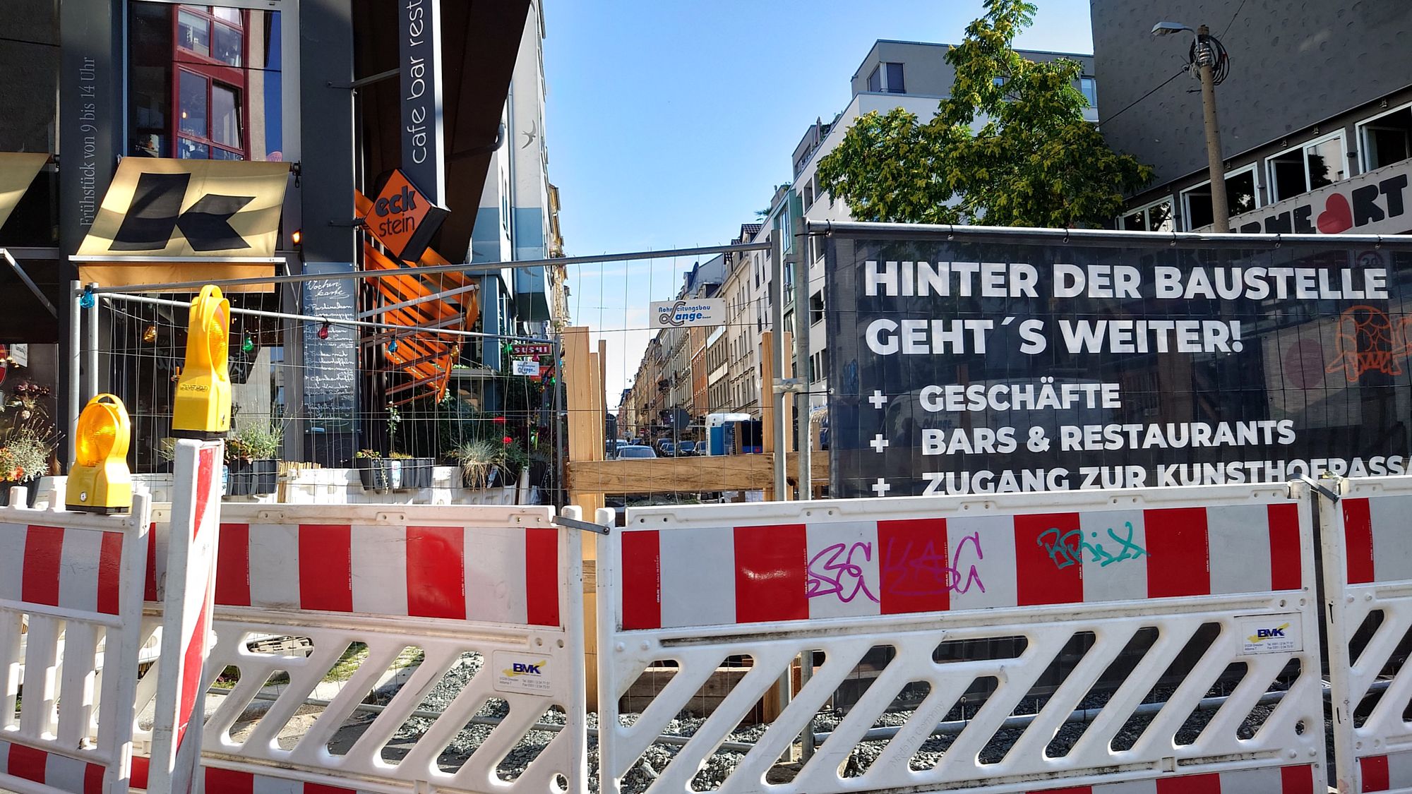 Ursprünglich war das Ende der Baumaßnahmen an der Alaun- Ecke Louisenstraße für Mitte August geplant. Nun teilte die Pressesprecherin Viola Martin-Mönnich von der Sachsen-Energie auf Nachfrage mit, dass mit dem Bauende voraussichtlich erst Ende Oktober zu rechnen ist.