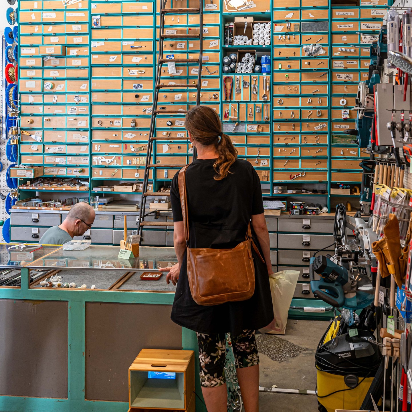 Statt Plaste-Produkten gibt es nun viel Holz, Edelstahl und Emaille. „Das funktioniert gut“, sagt Haaß. Die Neustädter Kundschaft und auch Besucher*innen aus anderen Stadtteilen schätzen das Angebot. Im Zuge der Umstellung hat sich auch die Ladengestaltung verändert. Der Eisenfeustel ist heller geworden und der kleine Laden wirkt auf einmal viel größer. Mit der Umgestaltung geht es nun peu à peu auch weiter. Dabei will Haaß jedoch nicht das herkömmliche Geschäft vernachlässigen. Sprich, die einzelne Schraube, den einzelnen Dübel und die Frage, für welche Wand das denn bitteschön sein soll, wird es weiterhin geben.