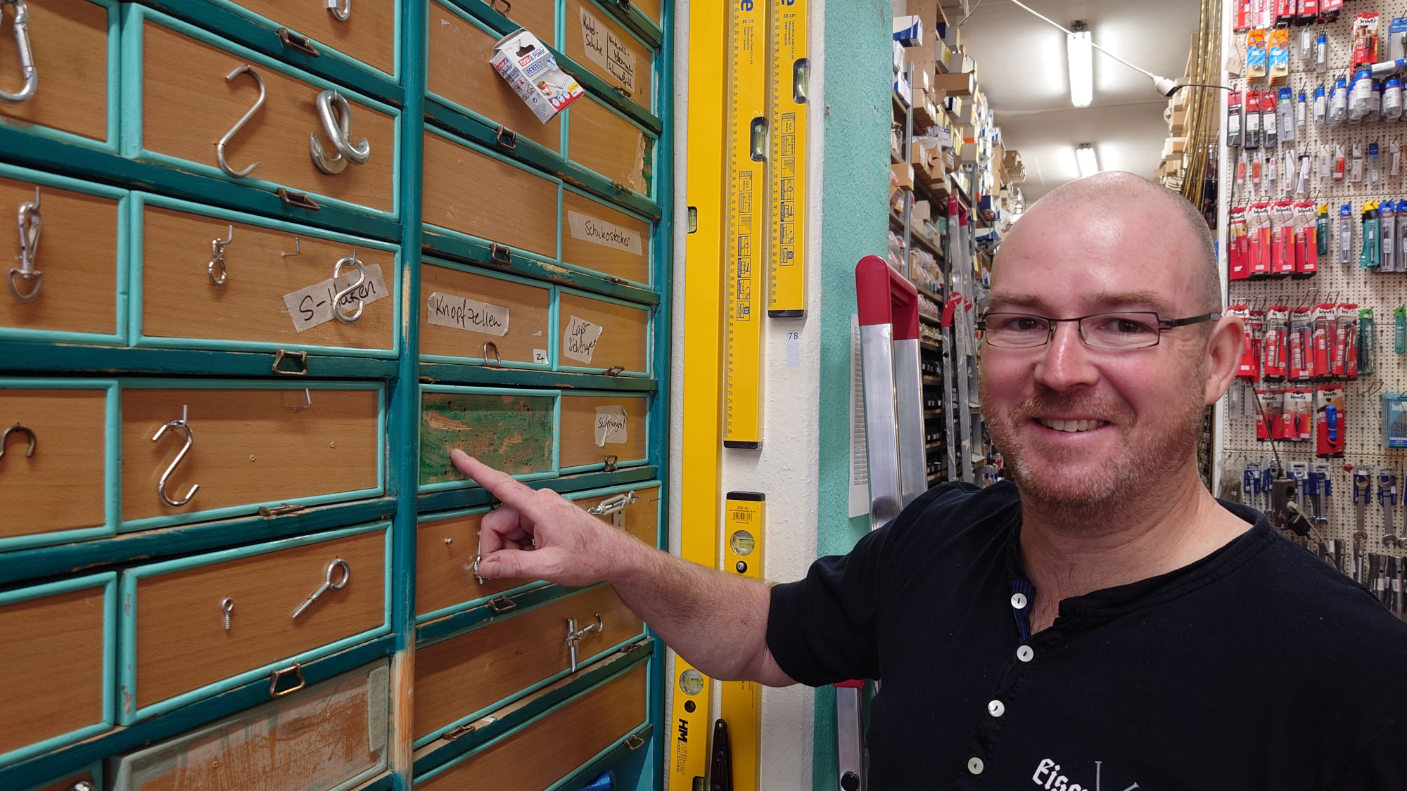 „Die Leute kommen wegen einer Schraube“, sagt Haaß, „dann sehen sie sich um und nehmen noch ne Emaille-Pfanne mit.“