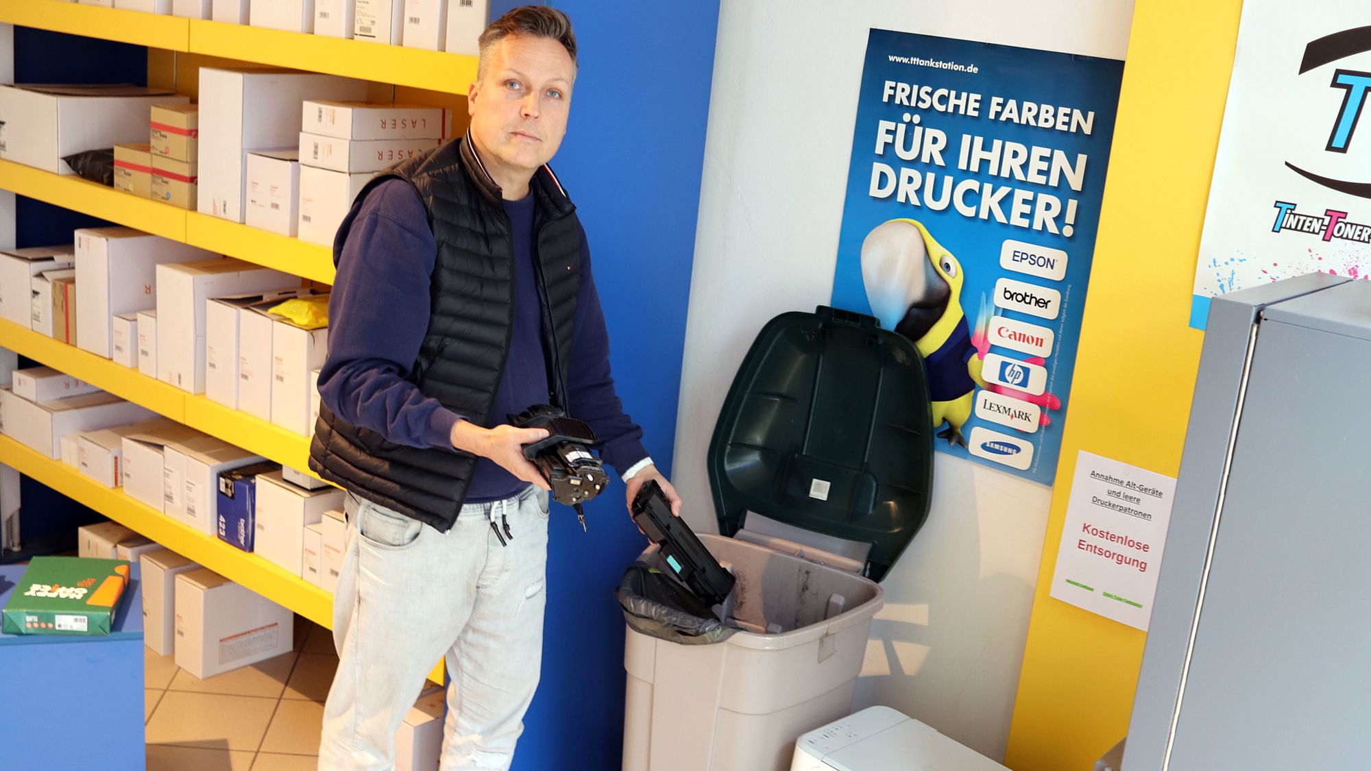 In der Tinten-Toner-Tankstation auf dem Bischofsweg bietet Sven Schröder seit Kurzem eine gratis Dienstleistung an. „Ich nehme alle Drucker zurück, auch wenn sie nicht bei mir gekauft wurden“, sagt er. Auf die Idee ist er gekommen, weil ihn Kunden fragten, die nicht wussten, wo man ein solches Gerät fachgerecht entsorgen kann.