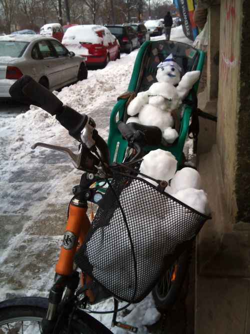 Denn wenn das, was dort im Vorderkorb des Fahrrades befindlich ist, nämlich ein Schneemann-Gelege ist (und danach, meine Damen und Herren, sieht es doch ganz eindeutig aus) bedeutet das, dass Schneemänner zu den Vögeln gehören.