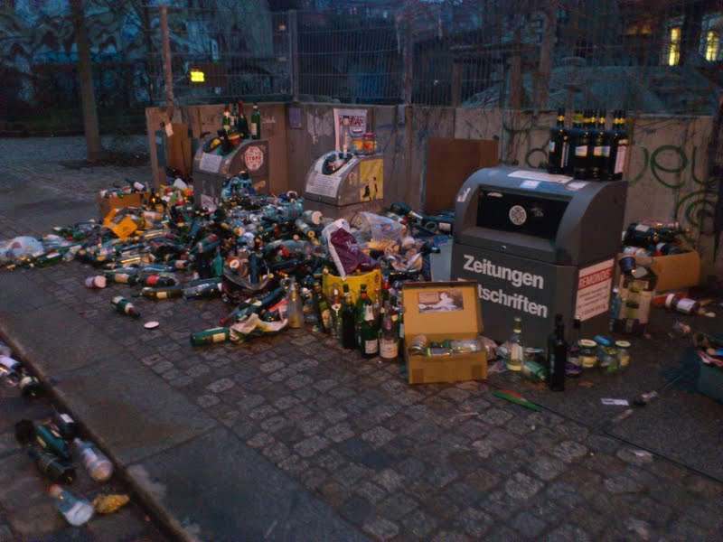 wenn die entsorgungsfirmen dass nicht vernünftig und nachhaltig hinbekommen dann gehört denen einfach der städtische auftrag entzogen. sicher ist es nicht korrekt die flaschen dann einfach auf die straße neben die vollen container zu stellen, aber in so mancher WG könnte man sich schlicht weg nichtmehr in der wohnung bewegen wenn man das leergut nach der sylvestersause nicht schleunigst entsorgt hätte.