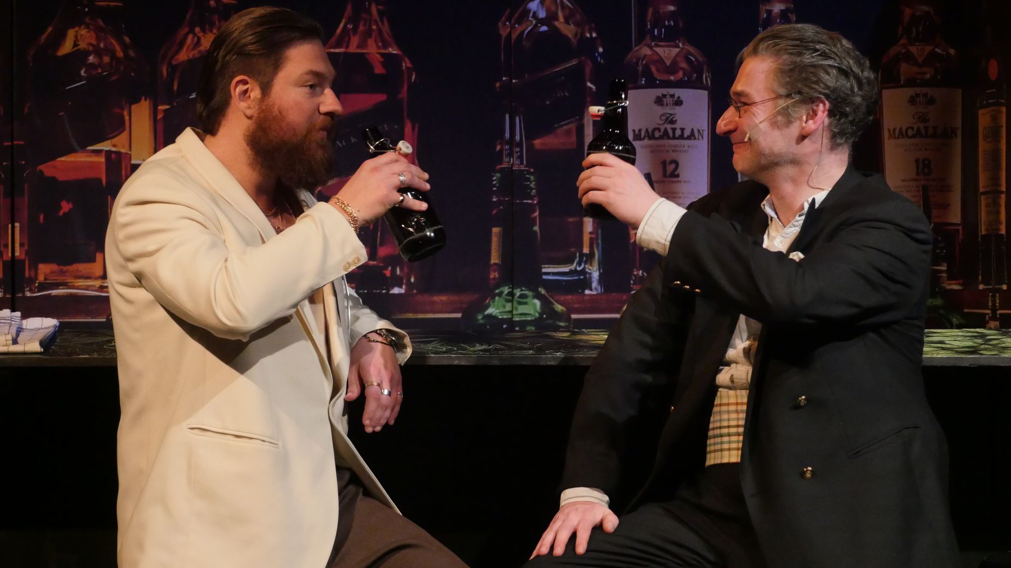 Unter mit schwarzem Stoff abgedunkelten Kirchenfenstern, in verlebtenBacksteinen eingefasst, ein schlichter Tresen mit Schnapsflaschen und ein paar in Gespräch und Bier vertiefte Männer. Was anmutet wie ein Zeitsprung in die amerikanische Prohibition, ist in Wahrheit ein Gastspiel des Eclectic Theatre in der St. Pauli-Ruine, zu sehen diesen Sonnabend und Sonntag.