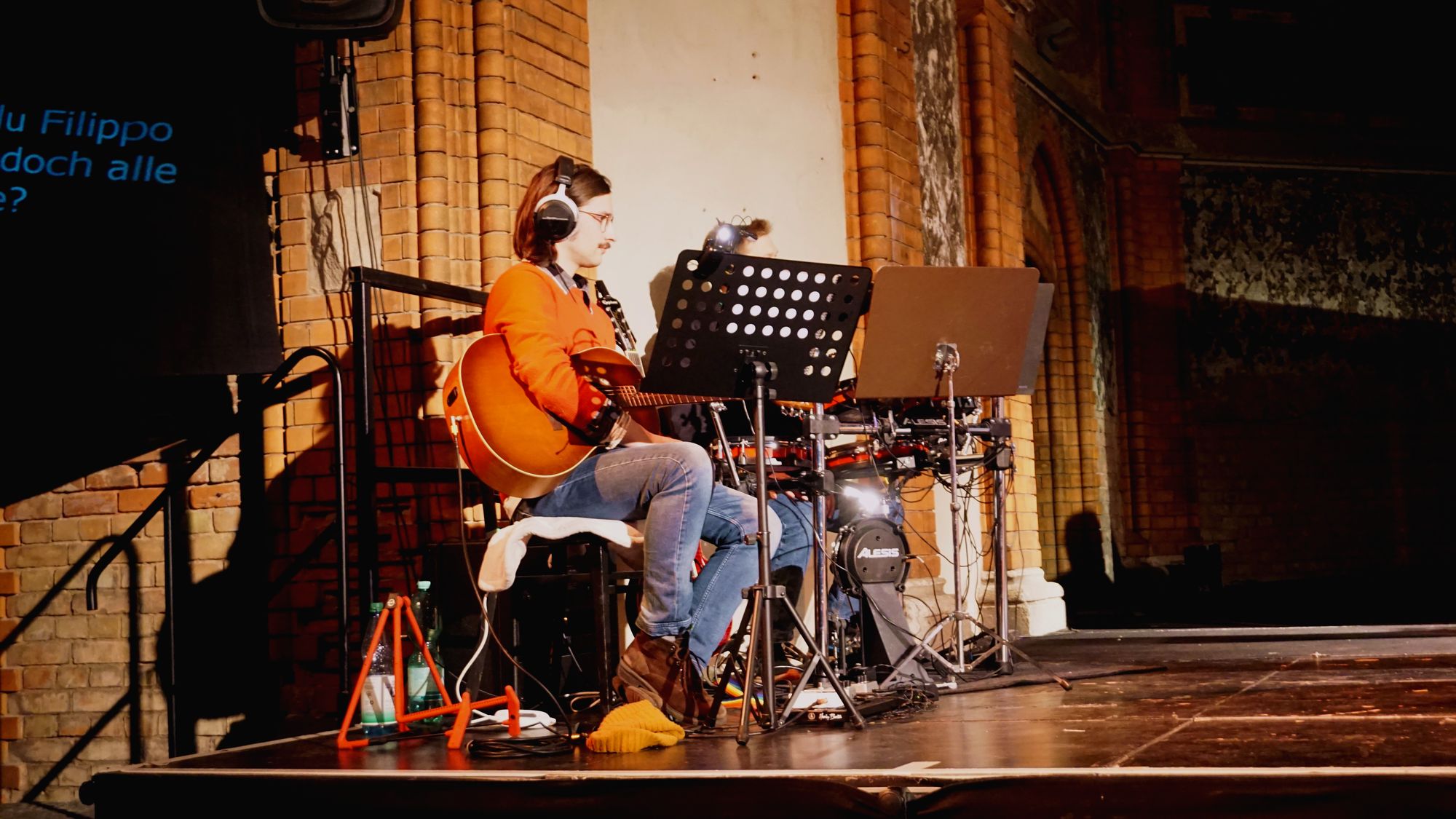 Und die Musik spricht schließlich eine Sprache jenseits von Ländergrenzen. Komponiert wurde sie von Lukas, der Robert – wie sollte es auch anders sein – beim Theater kennengelernt und Lust hatte, in das Projekt einzusteigen. Obwohl er davon schon so einige hat; neben Studium und Bildungsarbeit vor allem diverse musikalischer Natur.