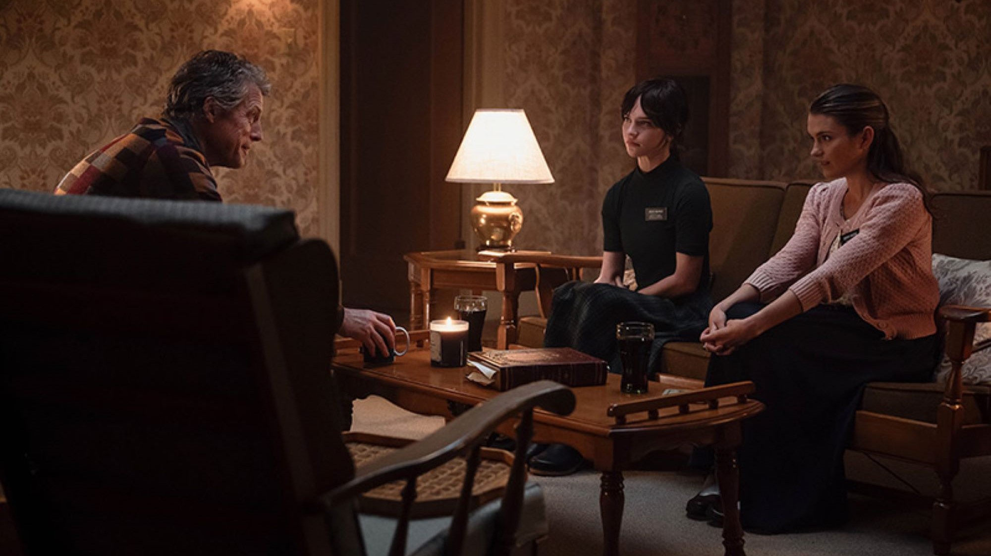 Moderne Architektur bietet oft kaum mehr als Betonquader mit Rollrasen und klapprigem Carport. Doch statt im Plattenbau in Dresden spielt dieser Film im idyllischen Neuengland, weit weg von der Hauptstraße: Dort klopfen zwei fromme Missionarinnen (Chloe East und Sophie Thatcher) an die Tür von Mr. Reed (Hugh Grant). Was harmlos beginnt, eskaliert schnell zu einem nervenaufreibenden Spiel ums Überleben.