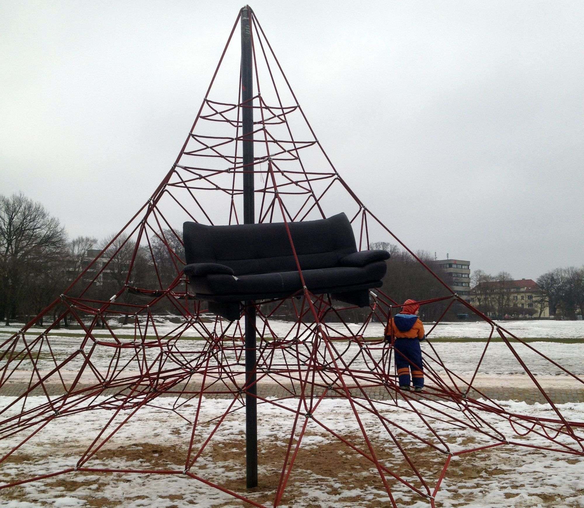 …was ist daran lustig das jemand sein altes Sofa auf nem Kinderspielplatz entsorgt? Wie lustig ist das denn am Ende wenn das Kind verletzt wird von nem runterfallenden/rutschenden Sofa?