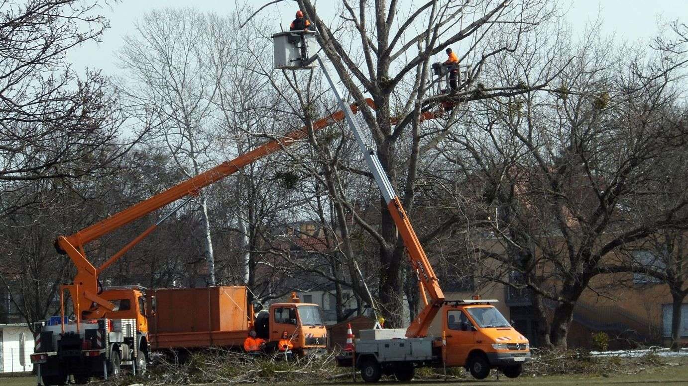 Kronenbeschnitt auf dem Alaunplatz.Mitarbeiter der Grünflächenamtes sind derzeit im Einsatz um den Alaunplatz für den Frühling fit zu machen. Die Bäume bekamen einen feschen Kronenbeschnitt und es wurde Totholz entfernt. Auch wurden aus einigen Bäumen die Misteln und einige Zweige entfernt. Wenn es dann irgendwann wärmer wird, können die Bäume neu ausschlagen. Brunnenmauer freigelegt.Der bislang mit Hecken und Sträuchern bewucherte Hang oberhalb der Hütte und der Tischtennisplatten wurde gerodet und hat frische Erde erhalten. Nun kann man das Mauerwerk am Brunnen wieder gut erkennen.