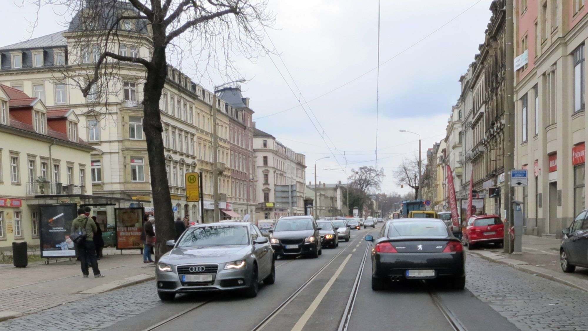 Die 4 Fahrstreifen brauch doch eh keiner. Ich fahr die Königsbrücker jeden Tag hoch und runter und das deutlichste Nadelöhr findet sich an der Kreuzung Stauffenbergallee. Da staut es sich teilweise über die Eisenbahnbrücke bis zur Aral zurück. Danach läuft es meist. Stadteinwärts lohnt sich eine zweite Spur erst ab der Post, damit der linksabbiegende Verkehr am Albertplatz nicht alles blockiert.