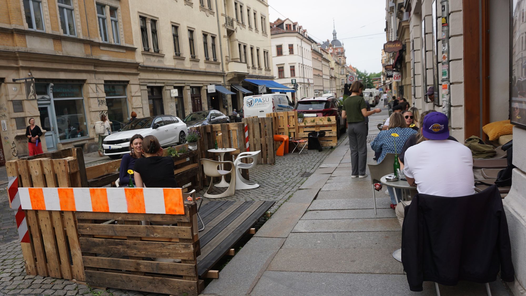 Sie schießen überall in der Neustadt wie hölzerne Pilze aus den Pflastersteinen und geben dem Straßenbild etwas Organisches zurück: sogenannte Parklets, also Terrassen, die Gastronomiebetrieben als Außenbereich dienen und dafür die direkt davorliegenden Parkplätze als Fläche nutzen.