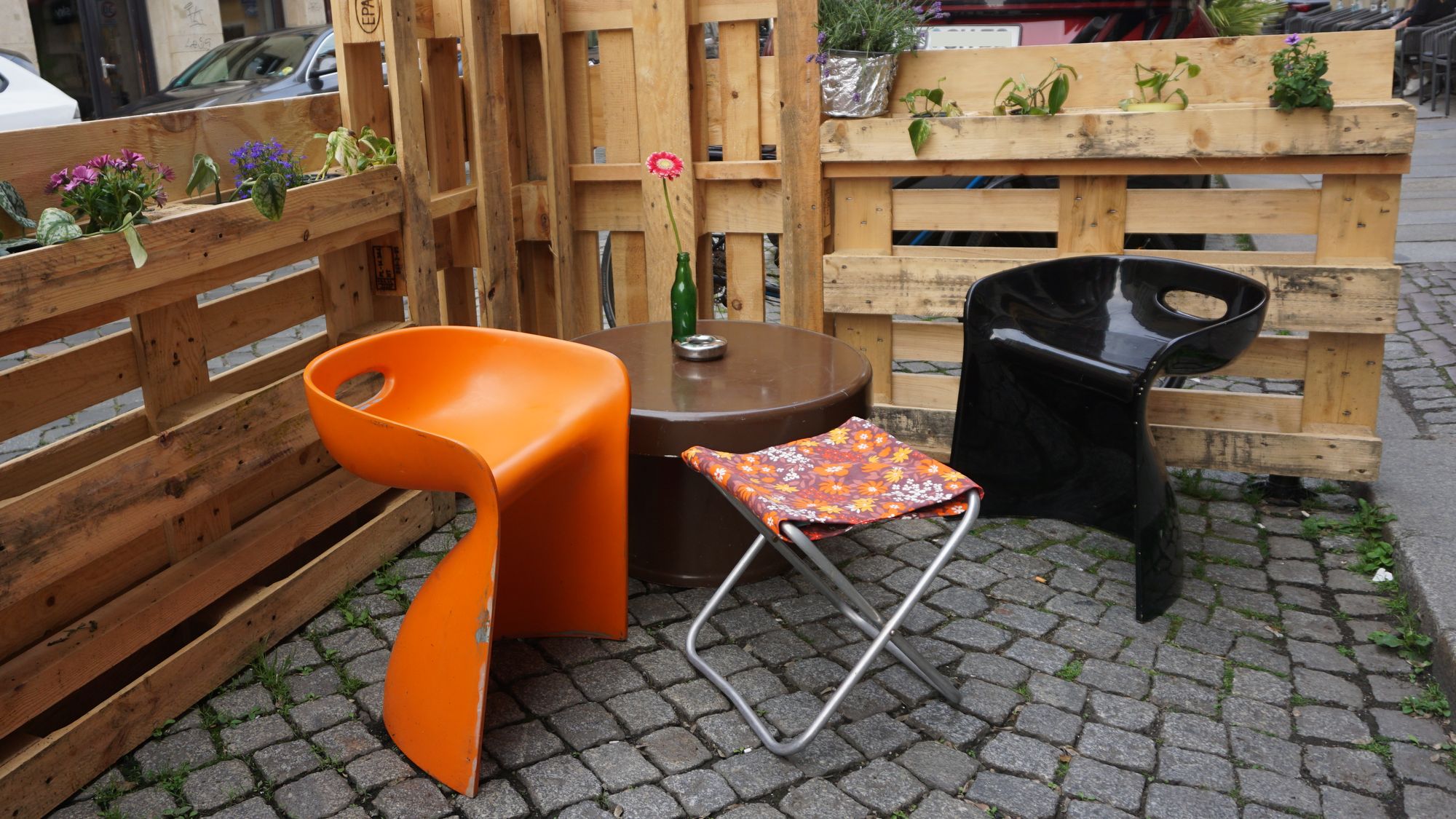 Funktionieren, das heißt unter anderem, nicht geklaut werden. Guram nimmt das statt als Ärgernis eher als einen der vielen Faktoren, die es zu beobachten gilt und an die sich anzupassen sinnvoll ist, soll das Geschäft laufen und eine gewissen Grundgelassenheit beibehalten werden. So auch die Herangehensweise ans Parklet: „Mal schauen, wie es angenommen wird. Wir sehen es als Entwicklungsprojekt.“