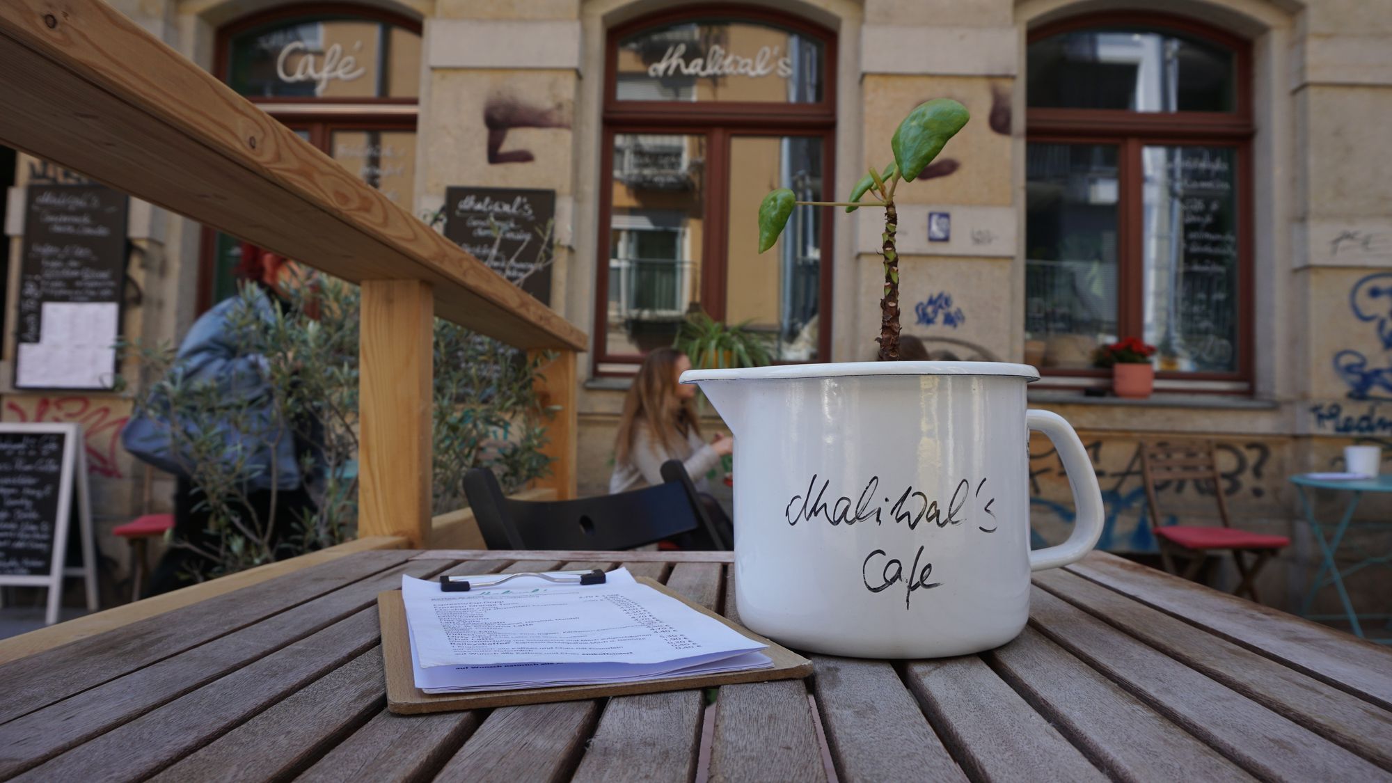 Für den hat Dhaliwal‘s Café nach dem Bauingenieur eigens einen Tischler beauftragt. Die Möblierung und Deko ist dann fast nur noch ein kleiner Posten auf der Liste. „Es sind wirklich enorme Kosten gewesen, aber wir hoffen, dass es sich lohnt“, resümiert Heike. „Seit dem ersten Tag, an dem das Ding hier steht, sitzen auch Gäste drauf.“