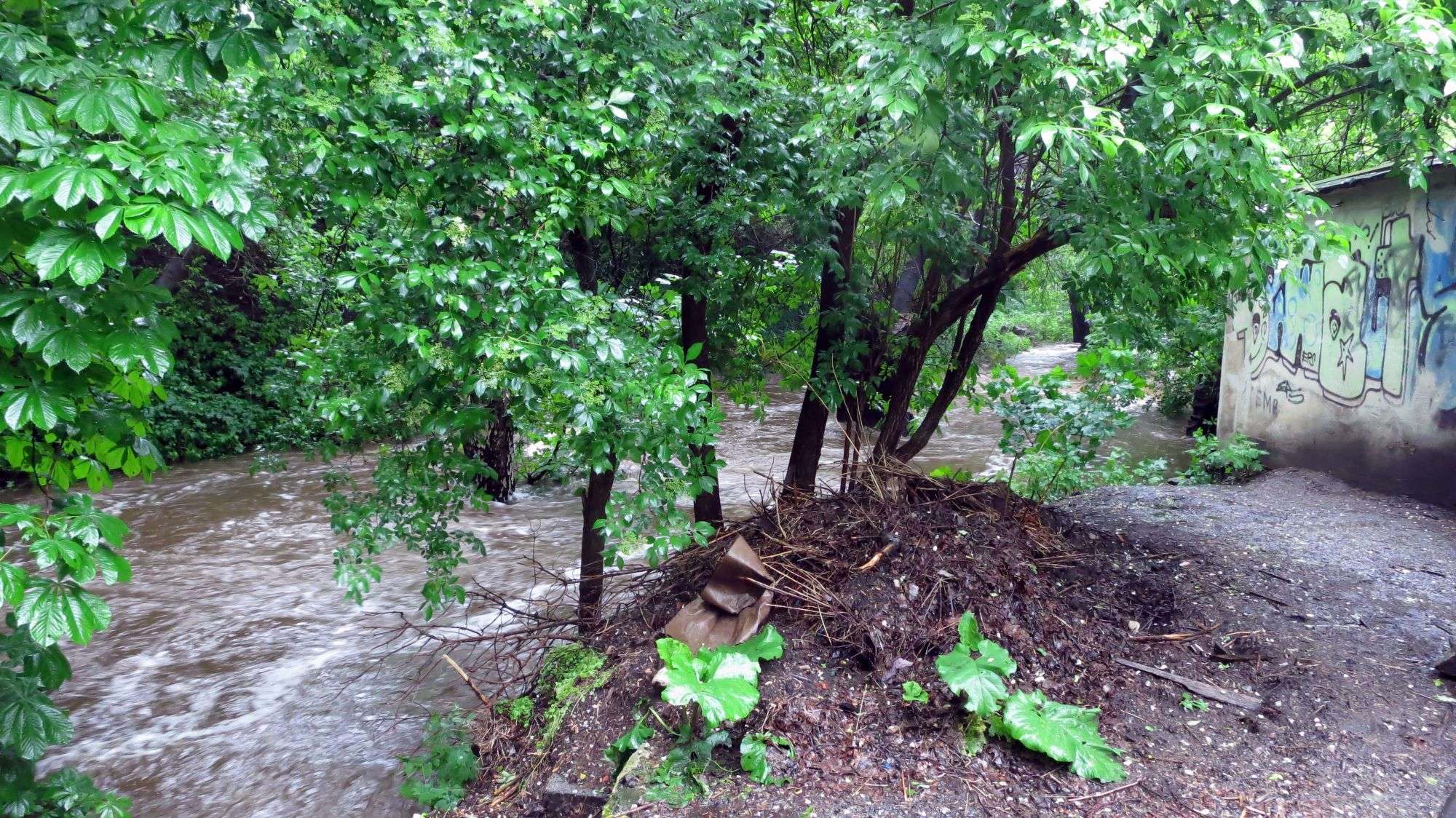 Bin grad dran vorbei. Ist noch trocken, dort hinten hat es sich etwas beruhigt.