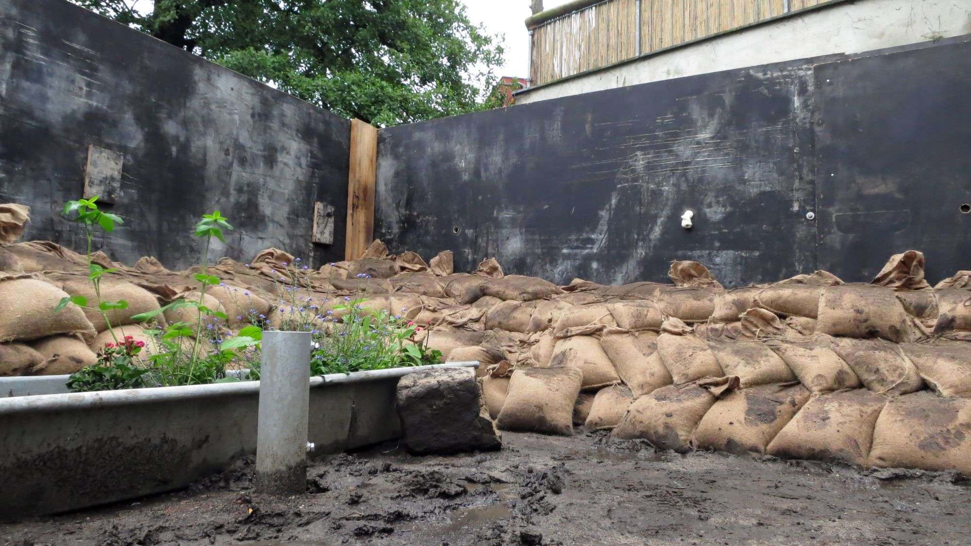 Damit fällt eine Gefahr weg: 2002 kam das Wasser „hintenrum“ über die Kanalisation. Jetzt hingegen fängt die Kanalisation das Wasser, welches durch die Sandsäcke läuft, einfach auf und bringt es weg…