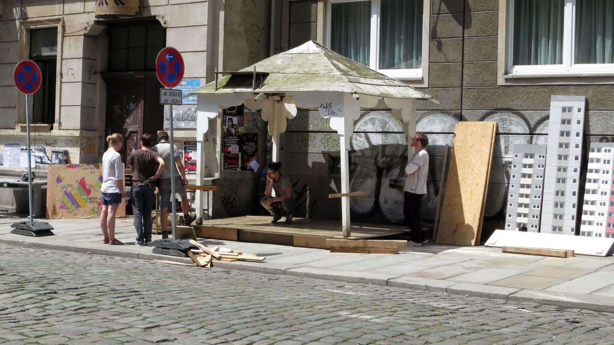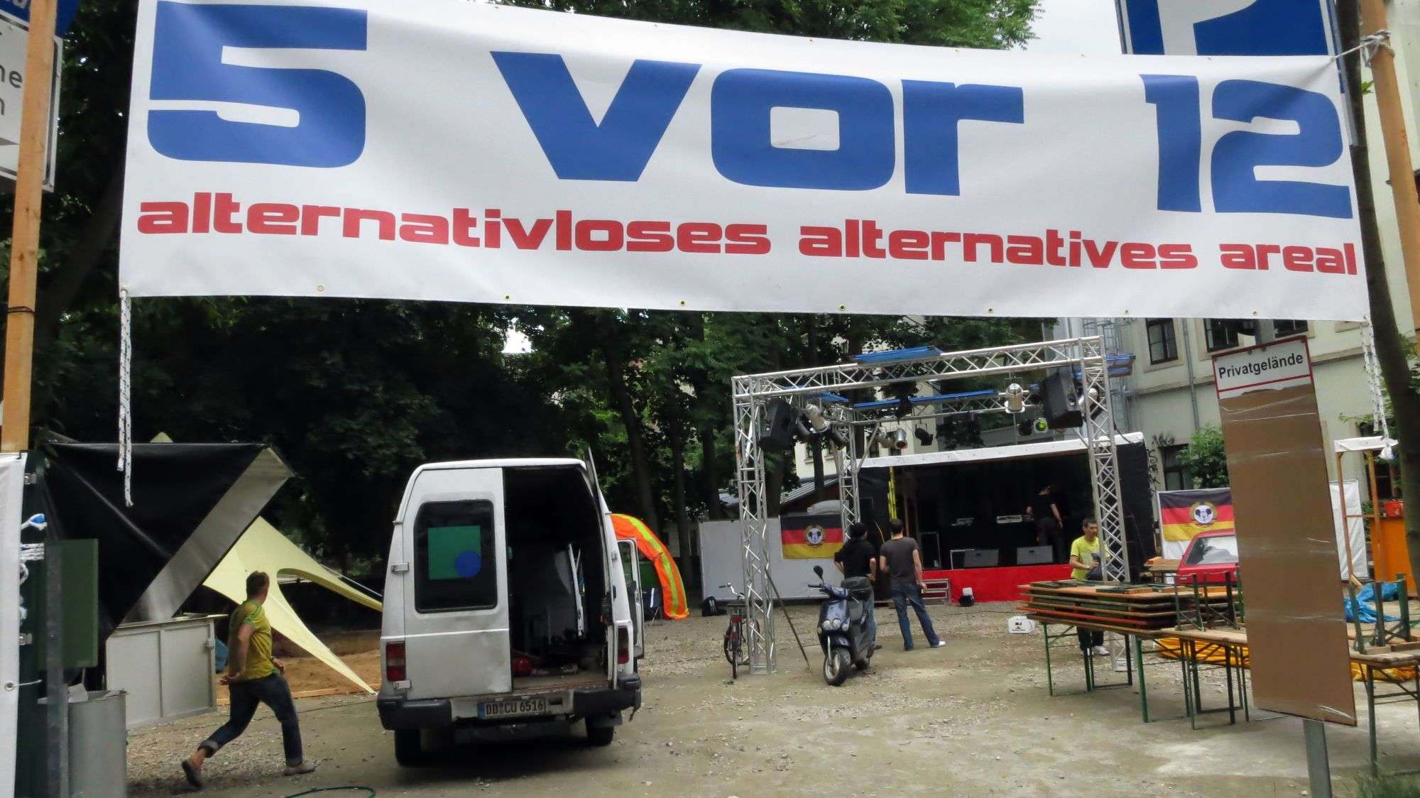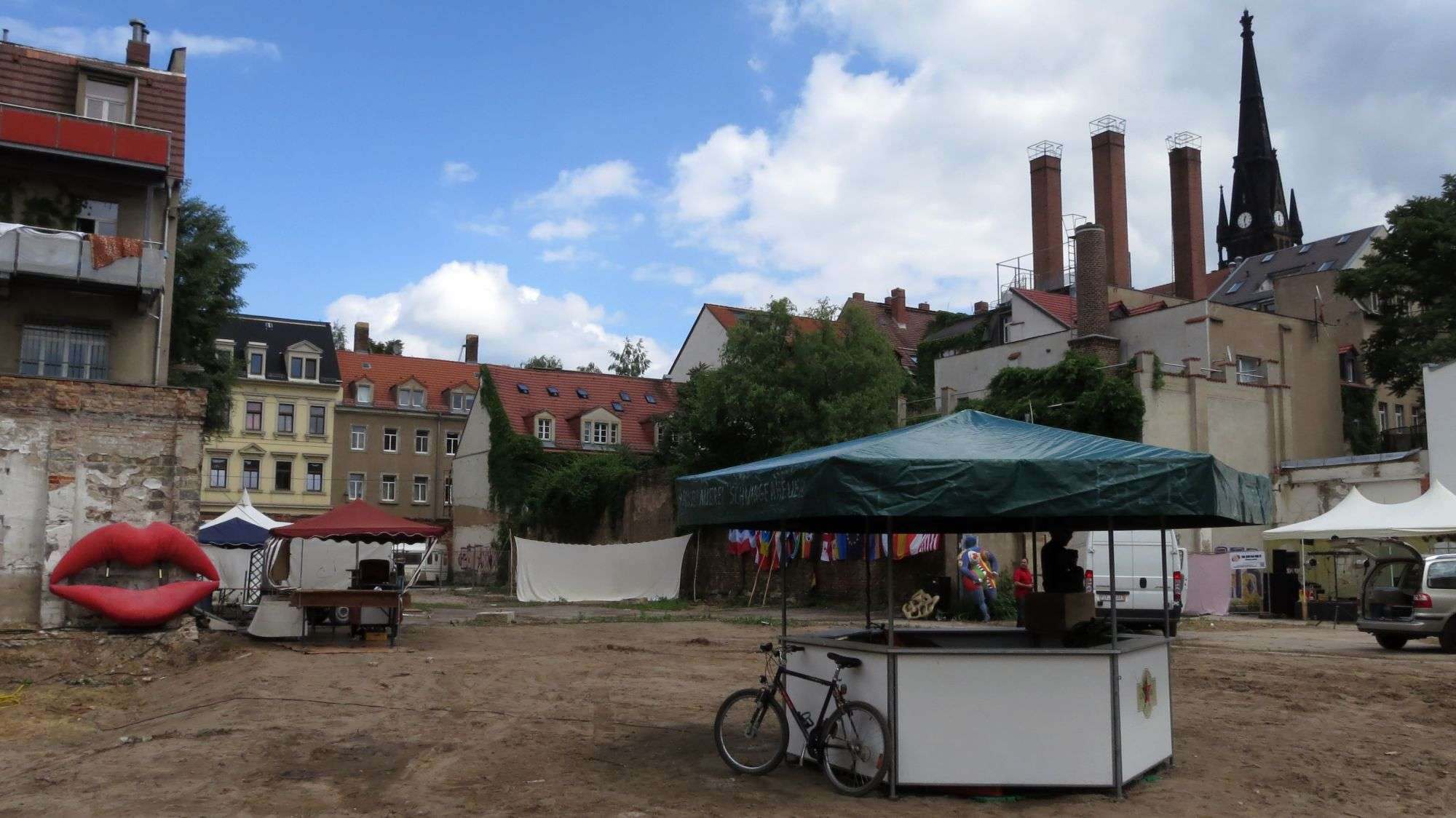 Ein Kribbeln liegt in der Luft. Die Neustadt ist voller Vorfreude. Überall wird geschraubt und gebohrt, Kisten und Fässer werden geschleppt. Transporter- und LKW-Fahrer fluchen laut. Ordnungsamtsmitarbeiter in weißen T-Shirts ziehen prüfend durch die Straßen. Die Republik rüstet sich für den Besucheransturm. Etliche Flaggen hängen schon aus den Fenstern, die größte natürlich am BRN-Museum.