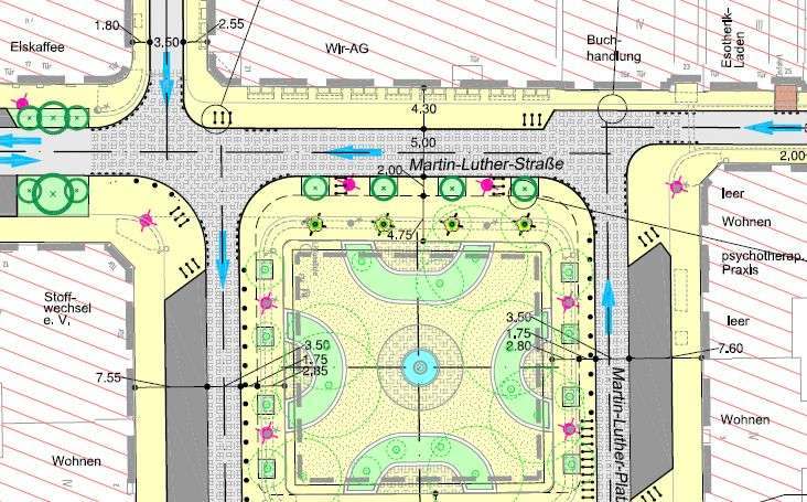 ich finde die reduzierung der parkplätze gut. der martin-luther-platz ist viel zu schön, um ihn weiter als vollgerammelten blechabstellplatz zu missbrauchen.