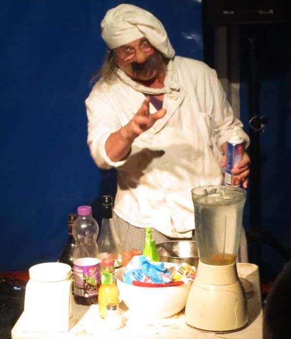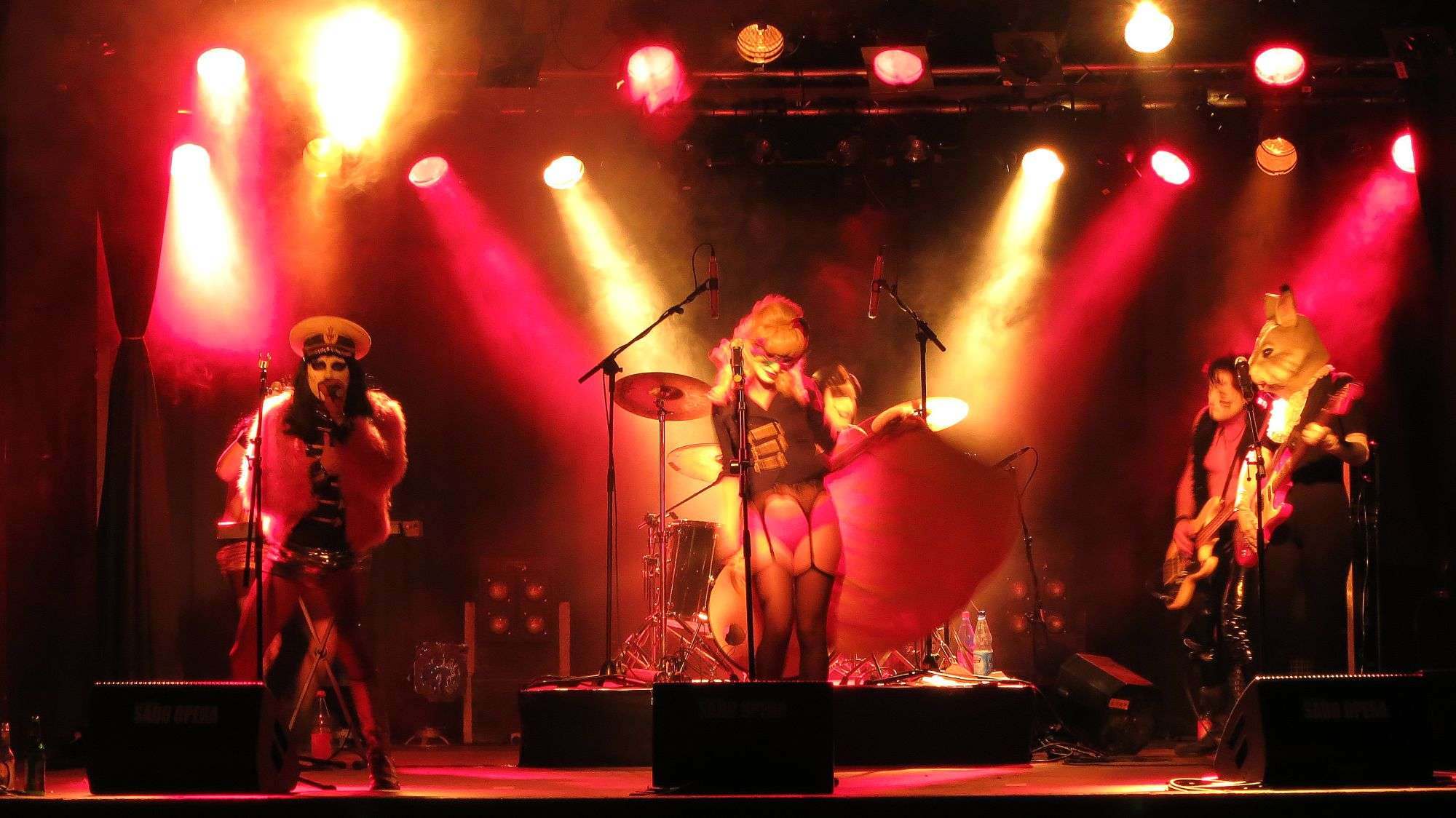Viel Licht, große Show: Sado-OperaBlitz, Donner, Rauch – nackte Brüste werden mit einem Elektroschocker gequält. Langhaarige Dünnbeiner springen über die Bühne, schreie Parolen. Das Publikum johlt und bleibt doch zum großen Teil distanziert sitzen. Auf der Bühne läuft die groß angekündigte „Sado-Opera“. Die Künstler selbst nennen es „Electro Punk Cabaret“ Für mich ist die Show eine Mischung aus den Auftritten der Altrocker von „Kiss“ und den hippen Künstlern von „Bonaparte„. In diese Show-Mischung hat noch jemand einen Spritzer „Femen“ getan und schon ist das Spektakel fertig und ziemlich auf der Höhe der Zeit. Trichtern mit Franz Lasch Klare Bergquell-Suppe mit einem Hauch von HaferklößchenAber der Reihe nach. Pünktlich um 19 Uhr hatte ich mich mitsamt charmanter Begleitung zum Festgelände begeben, mittels Schaschlik und Bier gestärkt und mit Eintrittskarten eingedeckt. Um 20 Uhr starteten wir unsere theatralische Rundreise mit einem Besuch des Franz-Lasch-Ensembles. Der Kreateur der jahrelangen Schaubuden-Begleiter Debbsch & Lebbsch hat sich nun eine Koch-Show ausgedacht. Die Idee zur Show muss ihm während der letzten BRN gekommen sein, denn er hat das Trichter-Trinken zur Methode gemacht. Garniert wird das ganze mit jeder Menge spritzigem Humor. Bestens geeignet, um den Kopf von Alltagsproblemen frei zu bekommen. Ich empfehle, unbedingt in der ersten Reihe Platz zu nehmen.
