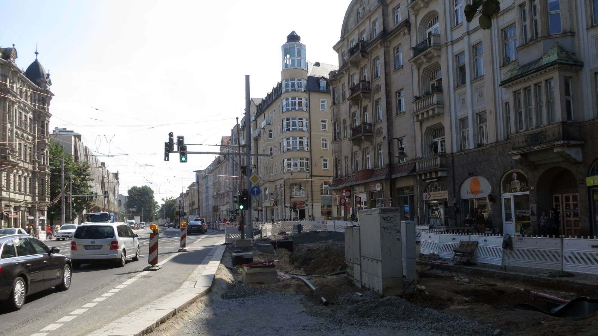 Als Anwohner der hoy direkt an der Ecke bautzner Straße muss ich sagen, ich bin heilfroh dass es größtenteils geschafft ist. Lärm ist die eine Sache, tagelang nicht zur Haustür rein oder raus kommen, weil mit kiwa und daher leicht behindert was über halbfertige schienen klettern, durch bau Zäune schlüpfen oder über waghalsige bretterkonstruktionen wanken – das war teilweise echt nicht schön. Aber ich hätte ja mit baby im alaunpark zelten können. ;)