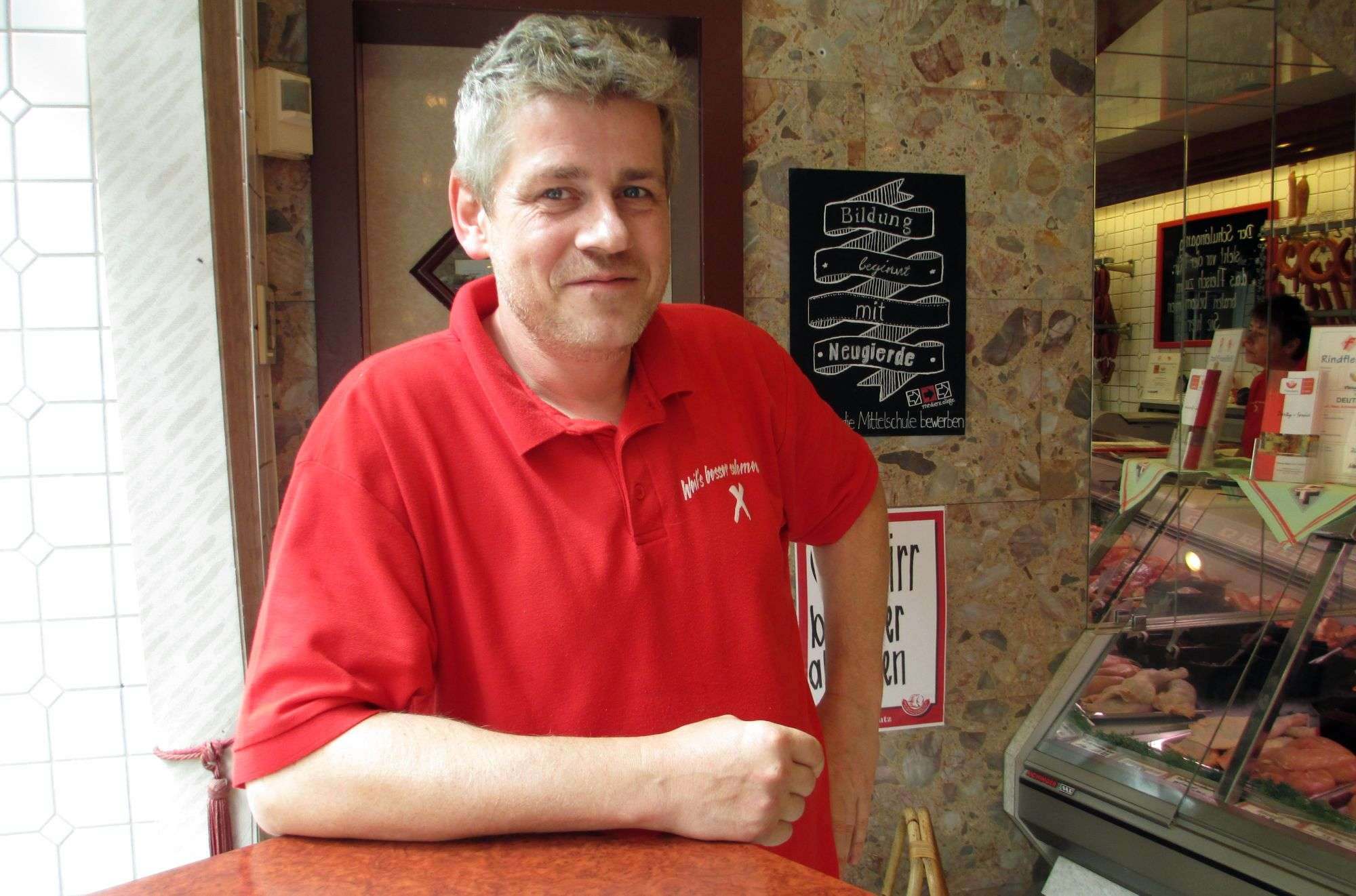 Sven Creutz in seiner Filiale auf der LouisenstraßeAuch ohne dass die zwei gläsernen Schiebetüren auseinander gleiten, ist mit der Nase eindeutig zu erkennen, dass es sich bei dem Geschäft mit der Nummer 25 auf der Louisenstraße um eine Fleischerei handelt. Ein süßlicher Hauch von Fleischaroma hängt in der Luft. Im Schaufenster repräsentieren Plastik-Schwein und Kunststoff-Kuh den lebendigen Ausgangsstoff der verwursteten Endprodukte in der Theke. Die sind, so verkünden es die Urkunden an der Wand, bereits Preisträger diverser Wettbewerbe. „Unsere Rezepte stammen zu 99 Prozent von uns“, versichert Inhaber Sven Creutz. Bis auf spanische Salami und ungarische Wurst.