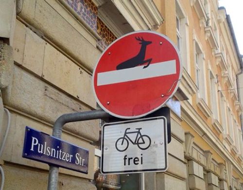 An der Kamenzer Straße sind mir ein paar umgestaltete Verkehrsschilder aufgefallen. Allerdings zieht das eine Menge Fragen nach sich. Ist ein solches „entstelltes“ Schild noch StVO-gerecht? Dürfen Mütter mit Kindern noch in diese Richtung laufen? Und sind noch andere Schilder in der Neustadt derart verziert?