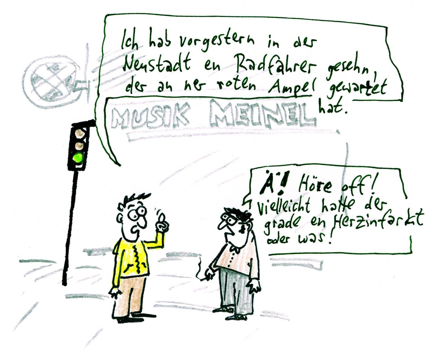 Ä, ne du, der Radfahrer war bestimmt ich. Aber ich kann euch beruhigen. Ich habe keine Herzprobleme, aber ein Kind dem ich jeden Tag erzähle dass man bei rot stehen bleiben muss.