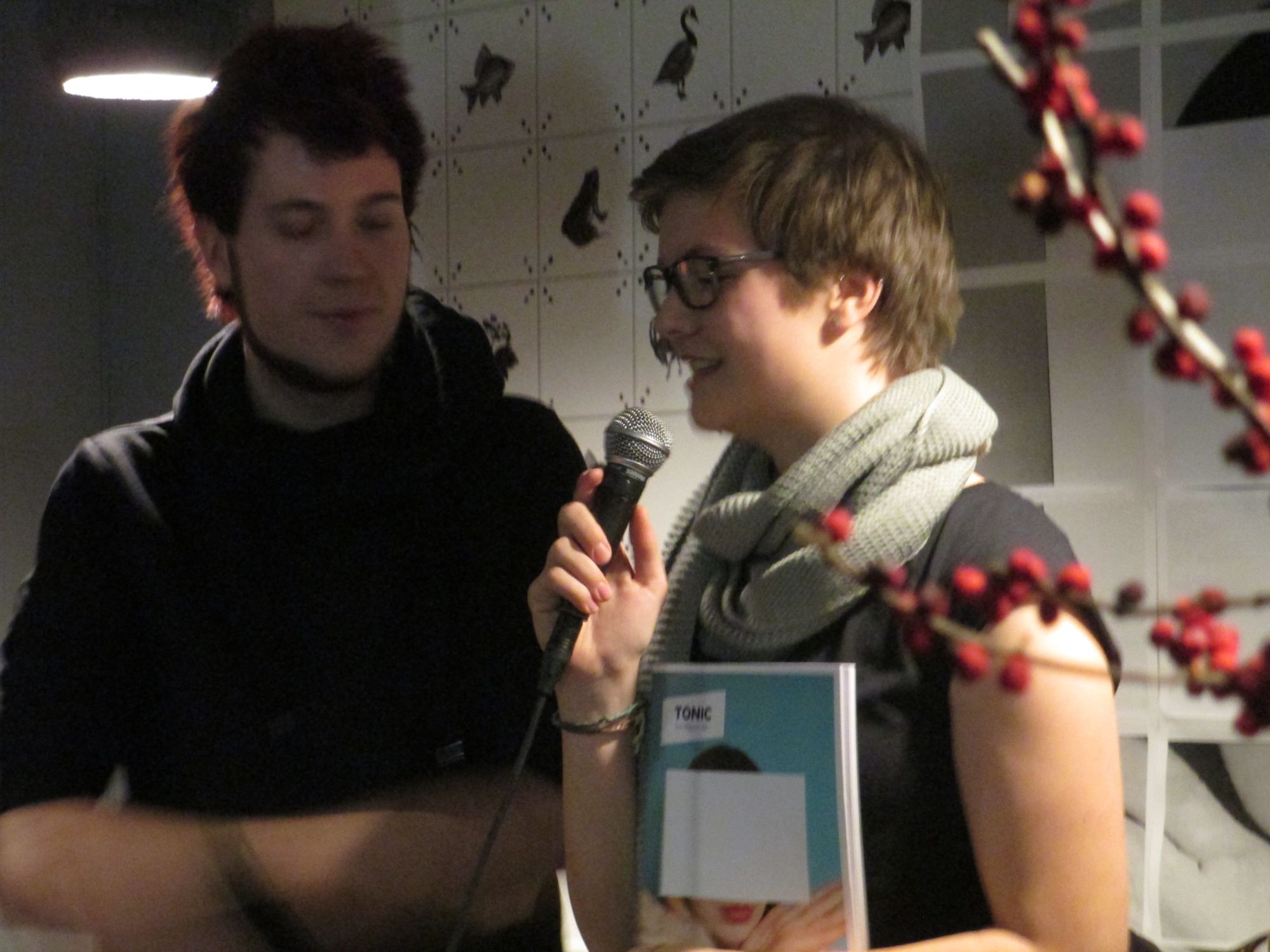 Juliane Goetzke, Chefredakteurin, steht Rede und AntwortIm tanteleuk, dem Café auf der Louisenstraße, drängen sich die Gäste. Bier und heiße Schokolade wechseln am Tresen den Besitzer, probeweise werden Gitarrensaiten gezupft. Nachdem jeder im Tetrisstil ein lauschiges Plätzchen erobert hat, steht Juliane Goetzke mit ihrem „Baby“ im Rampenlicht. Aufregung und gleichzeitige Erleichterung sind ihr anzusehen. Kurz vor dem Drucktermin wurden in der Redaktion zahlreiche Nachtschichten eingelegt, Seminararbeiten verschoben und Kaffeetassen geleert. Die 20-jährige Studentin ist Chefredakteurin des Magazins Tonic, dessen zweite gedruckte Ausgabe am vergangenen Freitag gefeiert wurde. Ein keckes, hintergründiges Stück Jugendkultur, das im allgemeinen Pressetenor als vielversprechende Konkurrenz zum Riesen „Neon“ gehandelt wird – und diesen Ruf gerne unterschreibt.