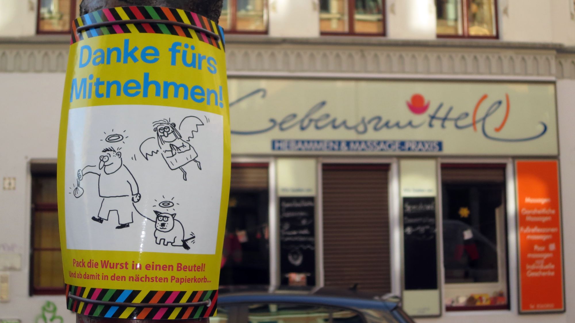 Auch die Bäume an Schönfelder und Sebnitzer Straße bekommen Schilder.Die Aktion ist ein weiterer Teil des Handlungskonzeptes „Szeneviertel ja, Dreckecken nein„. Seit April 2012 gibt es in Dresden Paten für einige Baumscheiben. So betreut Eckehard Möller ein Bäumchen direkt vor der Kirche. Doch gegen den Kot sind oft auch die Baumpaten machtlos. Die bunten Plakate sollen nun die Hundebesitzer einmal mehr wachrütteln.